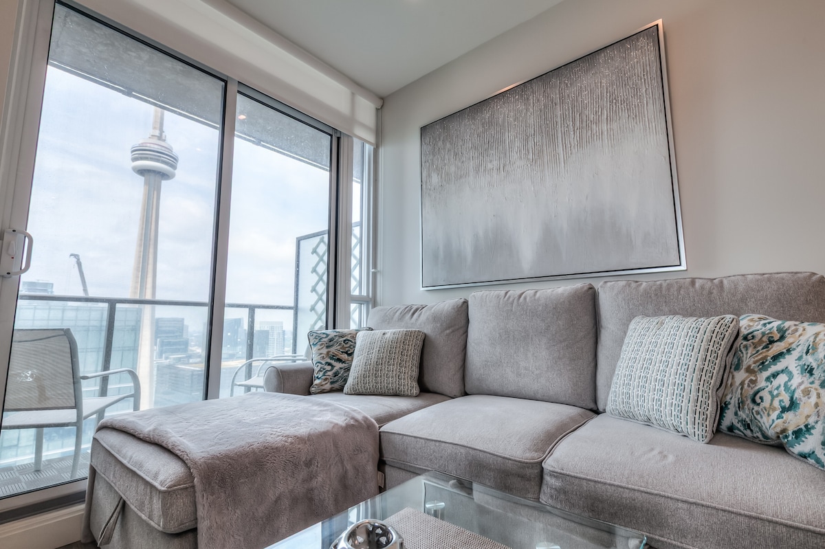 ¡Mantente cálido y cómodo en nuestro elegante apartamento de 1 dormitorio frente al impresionante balcón sin obstáculos de Toronto CN Tower y vistas a la ciudad! Esta casa se encuentra a unos 2 minutos a pie de Scotiabank Arena, a 2 minutos de Olympic Park, a 2 minutos del Acuario de Ripley de Canadá, a 2 minutos de CN Tower, a 3 minutos de Union, a 7 minutos de Art Gallery of Ontario y a 8 minutos del centro de Toronto. ¡También hay muchos restaurantes y tiendas cerca! Debes tener 30 años o más para reservar.