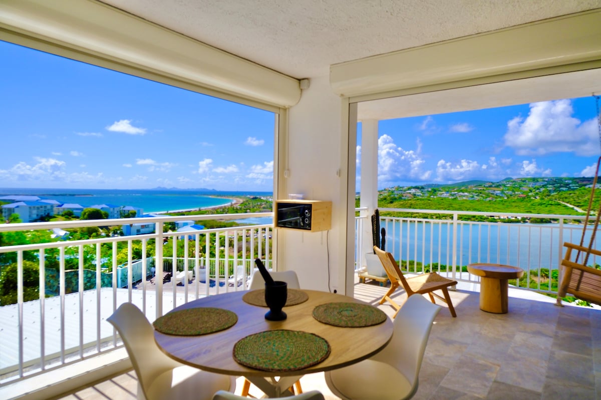 Su villa frente al mar de 2 dormitorios incluye una piscina privada, jacuzzi y impresionantes vistas del Caribe hacia Scilly Cay, Island Harbor. A solo 5 minutos en coche de Shoal Bay. Despierte con vistas interminables de las aguas turquesas del Caribe desde la cama King en la habitación principal. Relájese en las amplias terrazas inferior y superior. Cocina totalmente equipada. Ducha exterior. Acceso a la piscina del club, área común y fogata adicional. Perfecto para familias..