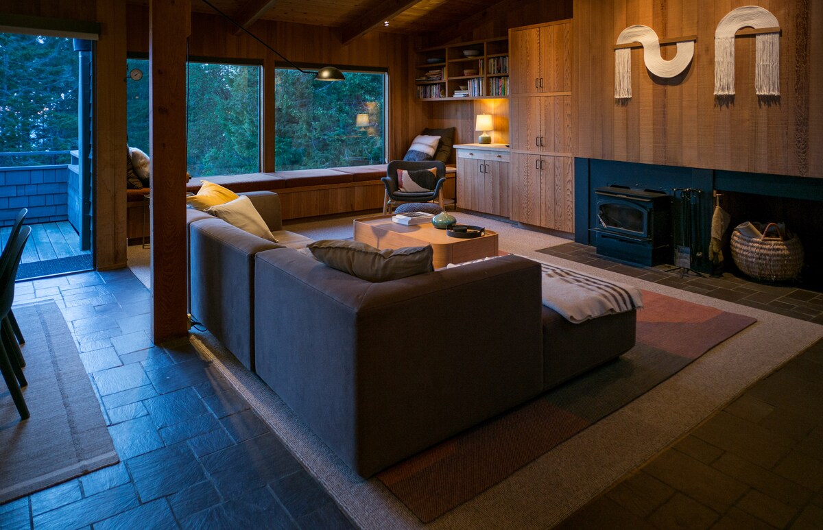The Gray Fox Dacha, un refugio de diseño conceptual en Sea Ranch, decorado con materiales elementales y orgánicos. Con espectaculares vistas al mar y situada en una ladera entre fragantes pinos costeros, imponentes secuoyas y robustos cipreses azotados por el viento, esta casa inteligente, luminosa y de diseño ecléctico, es etérea y espaciosa. La Gray Fox Dacha ofrece una constelación de espacios cuidadosamente seleccionados con artefactos de origen mundial de la colección personal del anfitrión.