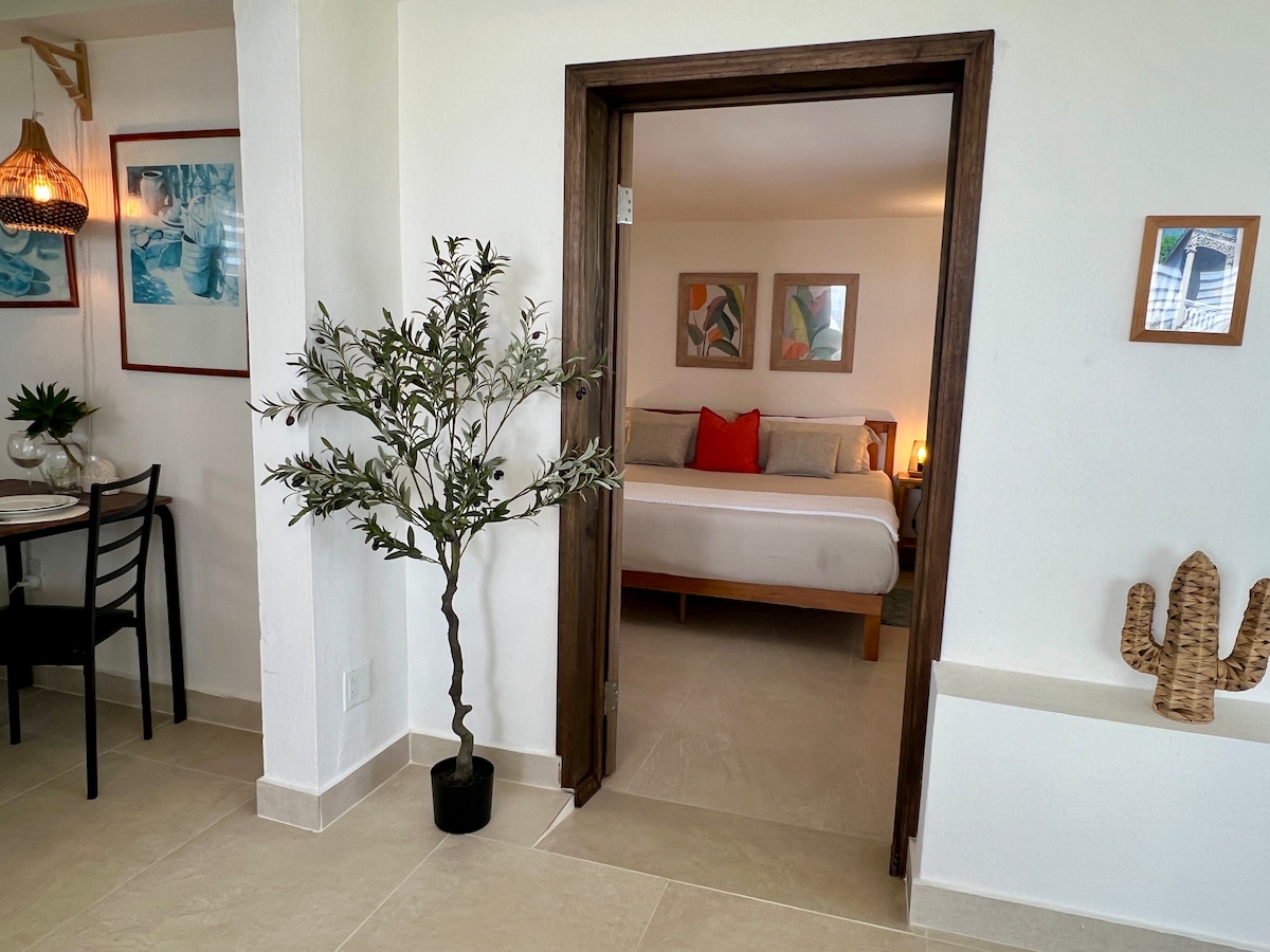 Olvídate de las preocupaciones en este espacioso y sereno apartamento tipo estudio diseñado para relajarse después de un largo día en la playa. Pon los pies en alto mientras disfrutas de una taza de café al amanecer o una copa de vino al atardecer, ya que este espacio ofrece vistas panorámicas desde todos los ángulos. Situado en el centro de la isla, este apartamento de vacaciones es la plataforma ideal para explorar playas, excursiones por la isla y cenas extraordinarias. Decoración contemporánea con comodidades modernas que todos pueden disfrutar.