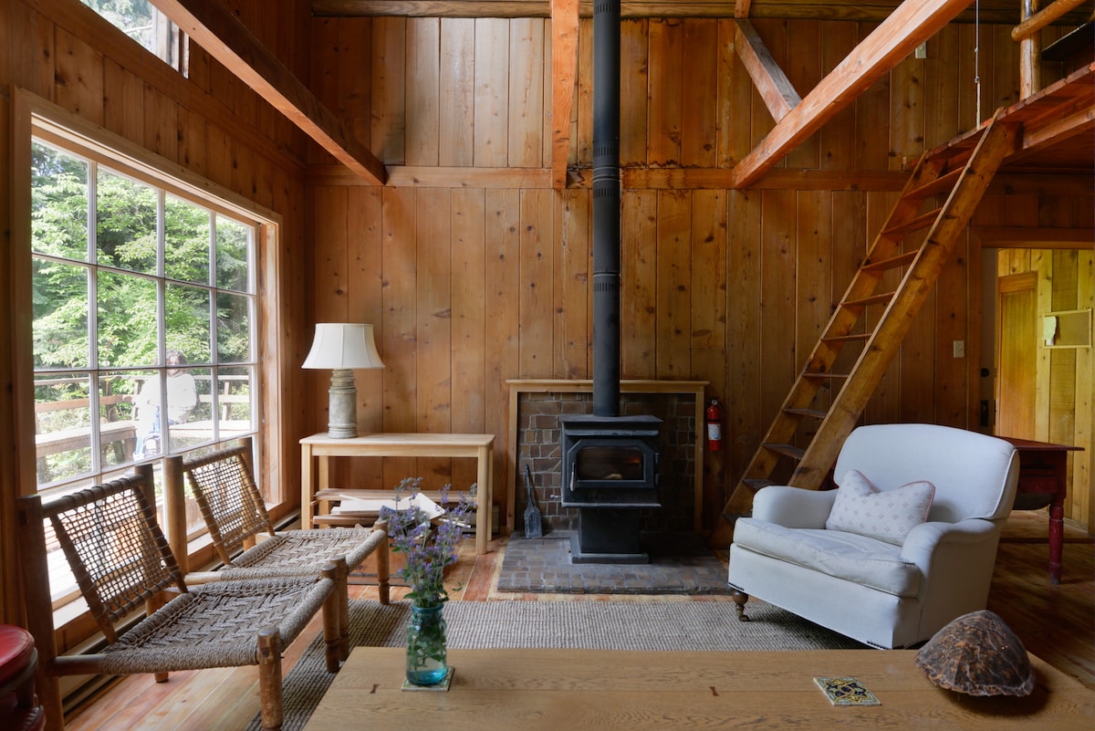 Un estudio con encanto en una finca boscosa de 40 acres. A 5 minutos a pie por senderos forestales de nuestra prístina playa privada de Puget Sound, o a 2 minutos en coche de la playa del faro en Pt. Robinson Park. Este estudio totalmente amueblado y lleno de luz tiene capacidad para 2 personas en una cómoda cama tamaño queen, tiene una estufa de leña (leña incluida), cocina completa, baño con ducha, zona de picnic y barbacoa de propano. Los caballos pastan fuera de tu ventana; la vida silvestre abunda. Se admiten mascotas por una tarifa de 45 USD/1 o 60 USD/2. Una propiedad para no fumadores.