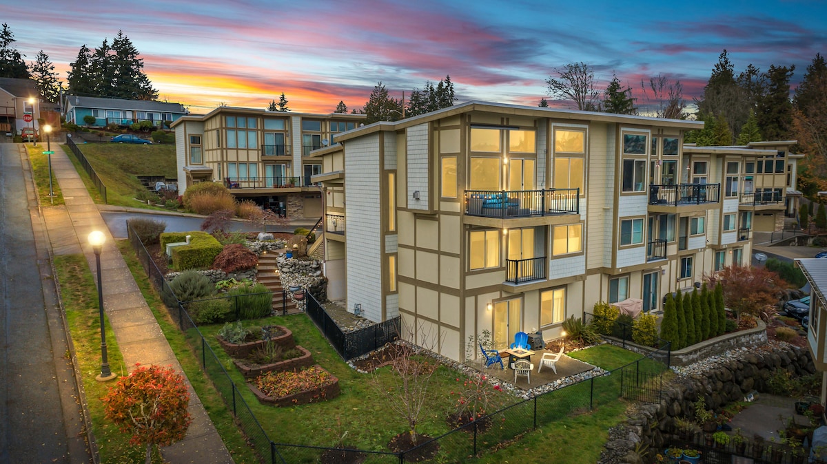Esta hermosa casa adosada con vistas al estrecho de Puget ofrece una cocina espaciosa y totalmente equipada, una acogedora sala de cine, acceso a la playa con kayaks y un pozo de fuego al aire libre. Es el lugar ideal para una escapada relajante. Además, está ubicado en el centro para explorar en cualquier dirección, ya sea el centro de Seattle, Hood Canal o el Parque Nacional Olímpico. Para aquellos que visitan por trabajo, estamos a menos de 10 minutos del astillero naval de Puget Sound y otras bases militares.