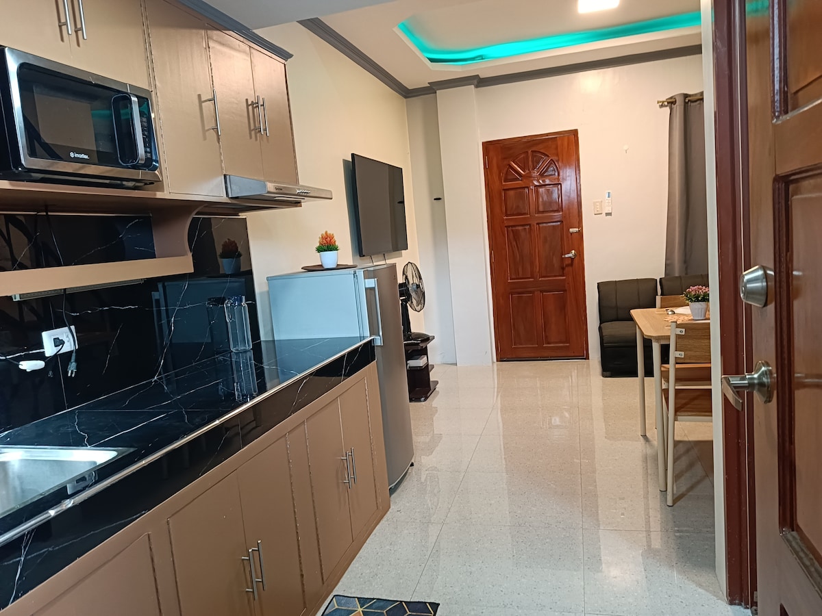 Relájate y desconecta en esta cómoda y espaciosa unidad tipo loft. ¡Todo lo que necesitas para una estancia corta pero relajante está aquí! ¿Tienes hambre? Estamos a 20 pasos de la panadería, cafeterías y restaurantes más cercanos. 7/11 está a 350 metros, a solo 5 minutos a pie. ¿Necesitas quedarte en casa? Una cafetería cercana ofrece entrega gratuita. ¿Lavandería sucia? Hay una lavadora y una lavandería justo debajo de la unidad. Estamos a 15 minutos del corazón de Kalibo, donde se celebra anualmente el famoso Festival Ati-Atihan.