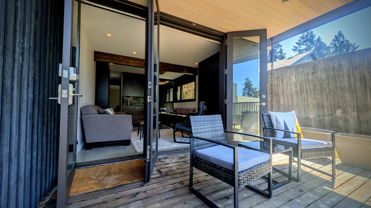 Nuestra suite con licencia con vistas al mar (construida en 2022) se encuentra en el centro de Sunshine Coast en West Sechelt. Está a 5 minutos en coche (20 minutos a pie) de la ciudad con la parada de autobús a 2 minutos de la puerta principal. Relájate en el espacioso patio donde puedes disfrutar de nuestra chimenea de gas, barbacoa Weber y patio trasero después de un día de exploración. Nuestra suite privada de un dormitorio viene con una cama tamaño queen, sofá cama tamaño queen, televisor inteligente de 50", Internet de fibra óptica de alta velocidad y aire acondicionado.