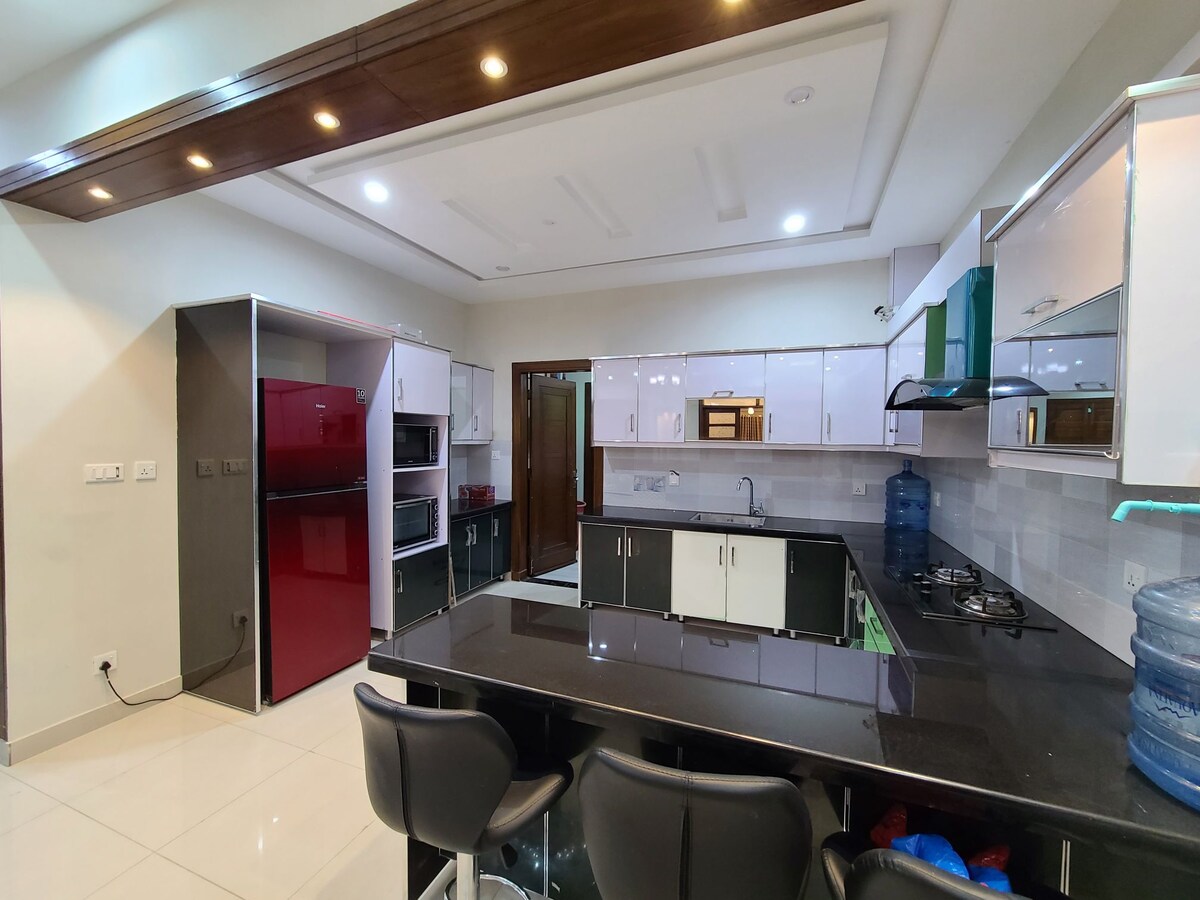 Moderna porción superior de 3 dormitorios en Bahria Town Fase 8, diseñada como un hotel boutique. Se siente como en casa lejos de casa con un toque moderno y la comodidad de un hotel de 5 ⭐️. 🛌 Cada dormitorio tiene una cama tamaño king, baño privado moderno, aire acondicionado inverter, TV inteligente de 55"con Netflix y otras aplicaciones de streaming. 💠 Disfruta de Wi-Fi de alta velocidad, desayuno de cortesía a pedido, cocina totalmente equipada, lavandería en el lugar y agua caliente las 24 horas, los 7 días de la semana. Comunidad segura y cerrada con circuito cerrado de televisión, cercado eléctrico en el exterior, ayudante en el lugar las 24 horas del día, los 7 días de la semana y estacionamiento gratuito.