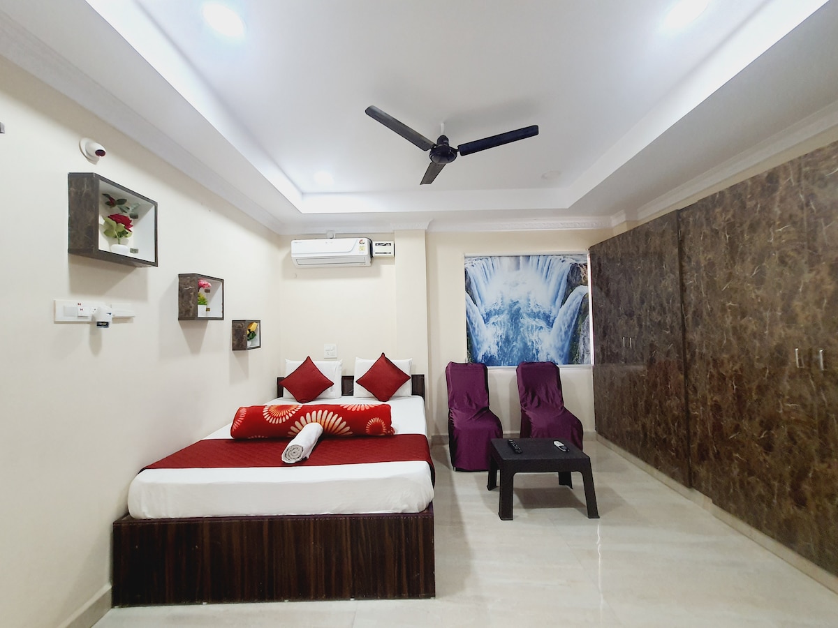 Experience luxury and comfort in our Executive Suite in Hyderabad, perfect for business travelers or couples seeking a premium stay. This elegantly furnished suite features a spacious bedroom, modern ensuite bathroom, high-speed Wi-Fi, air conditioning, and a dedicated work desk. Located in a prime area with easy access to IT hubs, shopping centers, and restaurants, it offers both convenience and class.