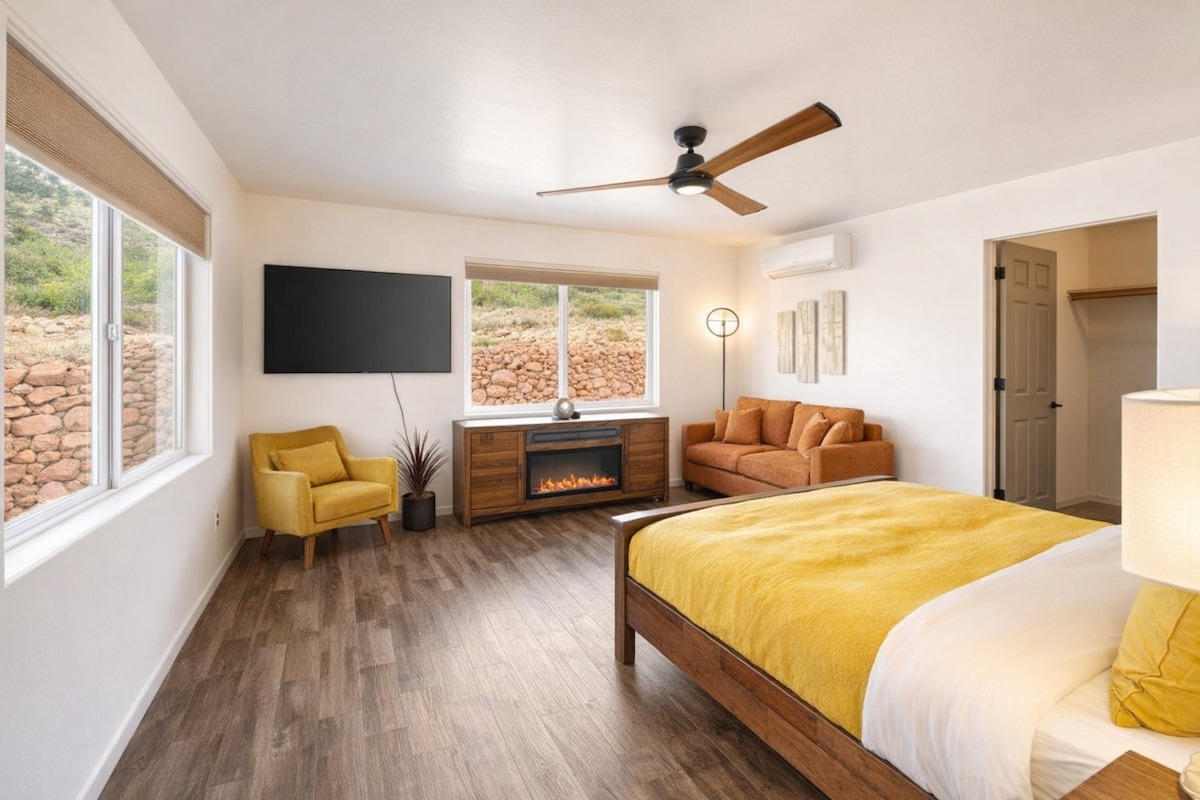 Experimenta la magia de Sedona en Sienna, un romántico estudio con vistas panorámicas de 270° a las rocas rojas, bañera de hidromasaje privada y terraza envolvente. Perfecto para parejas, recién casados o aniversarios. Disfruta de las puestas de sol desde tu terraza, explora los senderos cercanos o relájate en tu acogedora suite king con cocina completa y vistas impresionantes de la catedral y Bell Rock. Un oasis tranquilo y privado a pocos minutos de Uptown Sedona. Revisa las reseñas y escucha lo que dicen los demás.