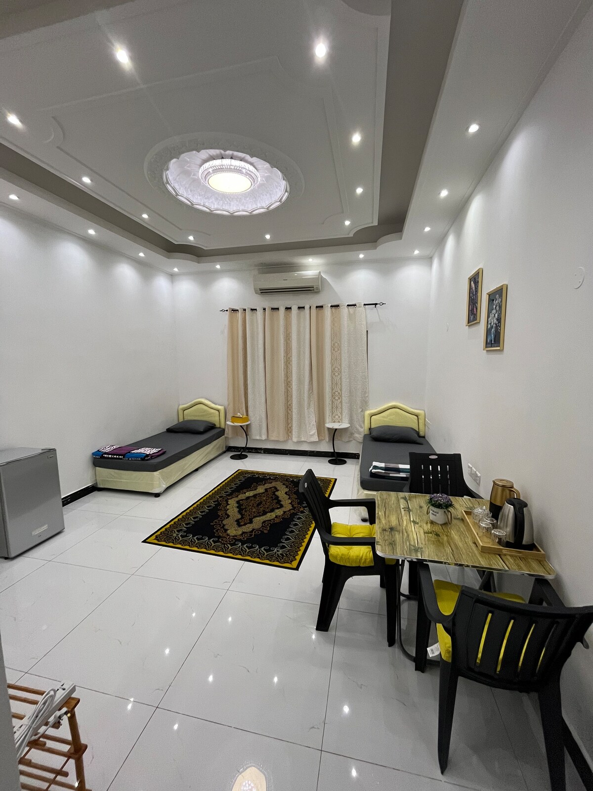 Professional Airbnb Su[perhost in Muscat An affordable studio in a quiet villa area in Al Khuwair, just 2 km from Avenues Mall. Ideal for solo travelers or business guests. The studio includes a comfortable single bed, sofa bed, 32” Smart TV with YouTube & Netflix, Wi fi, microwave, fridge, kettle, wardrobe and a private bathroom with shower. Close to popular restaurants, supermarkets, Flex Gym, and major mosques. The building is renovated, secured with CCTV on floors, clean, safe, and peaceful.