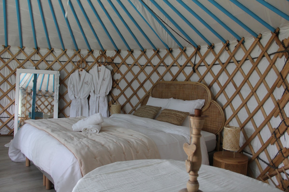 Escápate bajo las estrellas al borde del bosque, al fondo de nuestro jardín, instalado tranquilamente en la terraza de tu yurta mongola. Cerca del Loira en bicicleta y del castillo de la Bella Durmiente. Podemos acomodar caballos en potreros. Paja de heno en el sitio. Posibilidad de una experiencia estimulante con aceites esenciales para un momento de relajación y rejuvenecimiento y recibir una sesión de reiki Para mas información contactenos