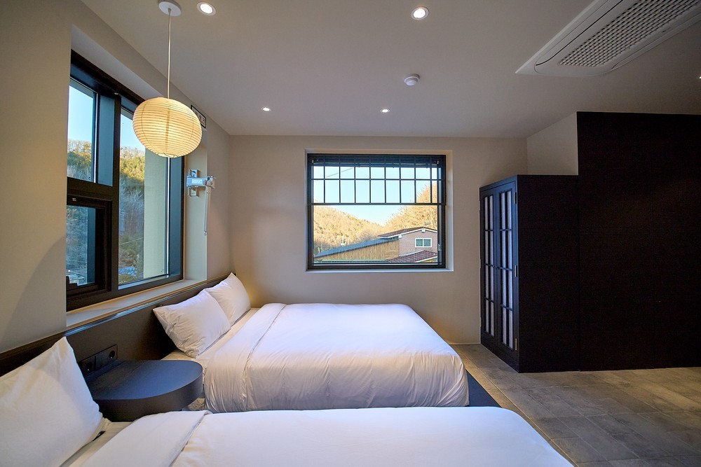 Es una pensiรณn Hanok ubicada en el bosque de Sejong. De las 10 habitaciones, 9 son para 4 personas. Le ayudaremos a elegir entre las 9 habitaciones cuando confirme su reserva. Habitaciรณn bรกsica para 4 personas: 2 camas de ondol para 1 persona, baรฑo, aire acondicionado, sofรก, mininevera Es un lugar donde los niรฑos pueden jugar libremente en el amplio cรฉsped y los adultos pueden disfrutar de la naturaleza y descansar tranquilamente. Puedes disfrutar de una barbacoa junto al fuego en el patio o en la chimenea. Las habitaciones tambiรฉn son ideales para experimentar el estilo tradicional de las casas coreanas. Tambiรฉn puedes experimentar la fabricaciรณn de cerรกmica (molde). Siente el verdadero descanso mientras escuchas el sonido de los pรกjaros y el viento ^ ^