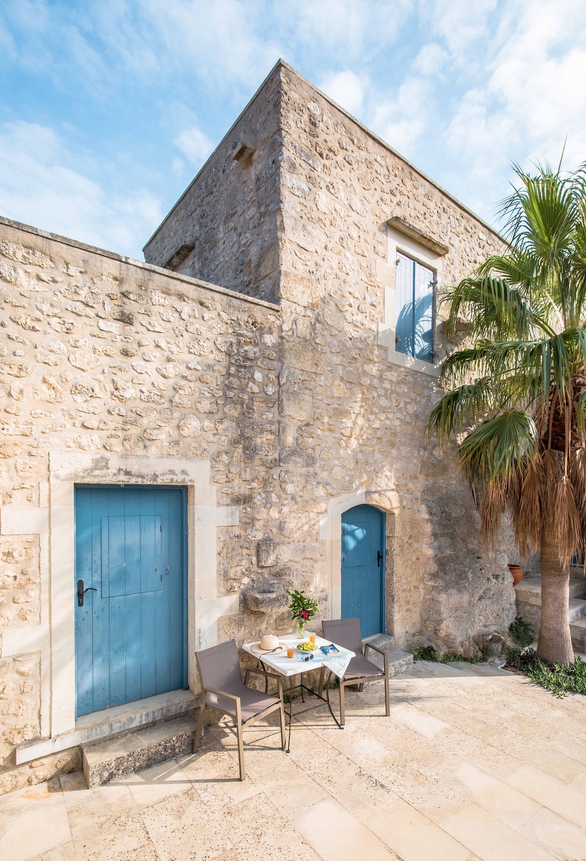 Un complejo de piedra totalmente renovado construido sobre tres antiguas grutas griegas. Antes era una fábrica veneciana de prensado de aceitunas. Ahora es una casa de vacaciones contemporánea con dos piscinas (interior y exterior) y un huerto orgánico de verduras y frutas locales.