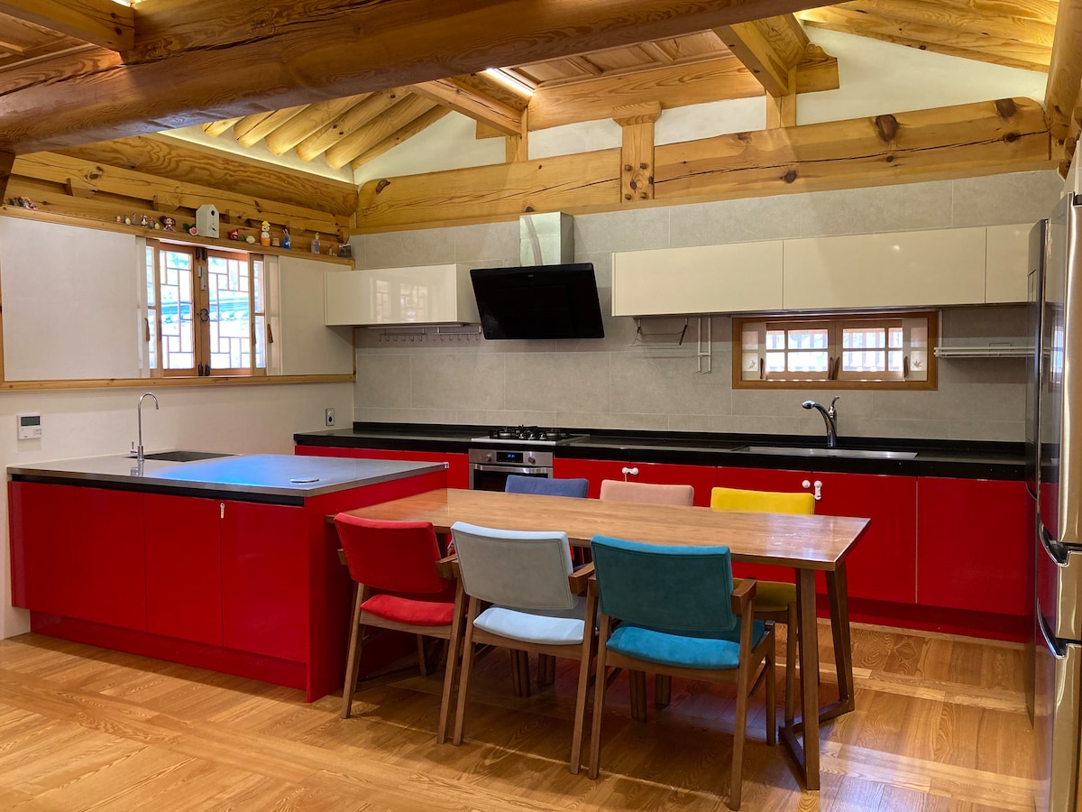 Syakdang está construido como un hanok con dos casas de amor y una casa principal, y hay un pasillo que es el centro del edificio que conecta dos hanoks. [Estructura de madera Hanok 8 zanjas (24,24 cm) pilar de derrame Sorosujip], y los materiales de estructura de madera que componen el edificio son grandes y gruesos, pero cada elemento tiene un marco grande y grueso, cada elemento tiene un marco de estilo palacio grande y espectacular. The Love House es un edificio con todas las facilidades para el alojamiento y la cocina, la cocina y las fiestas, y un espacio separado de la casa principal orientada al dormitorio. (100m ²) En la Love House, hay una sala de amor con una puerta larga (6 cilindros centrales), y puedes separar la habitación en dos habitaciones a través del armario. La habitación Love House 's Love Room está rodeada de una hermosa puerta de luz en un hanok, y si atenúas las luces de la sala de estar de la cocina, puedes apreciar la belleza de las puertas. Siéntete libre de utilizar el gran patio trasero. Incluso si reservas la Love House, es una composición que se puede usar sola, y al reservar la casa Love House, deja la casa principal vacía y solo un equipo por día.