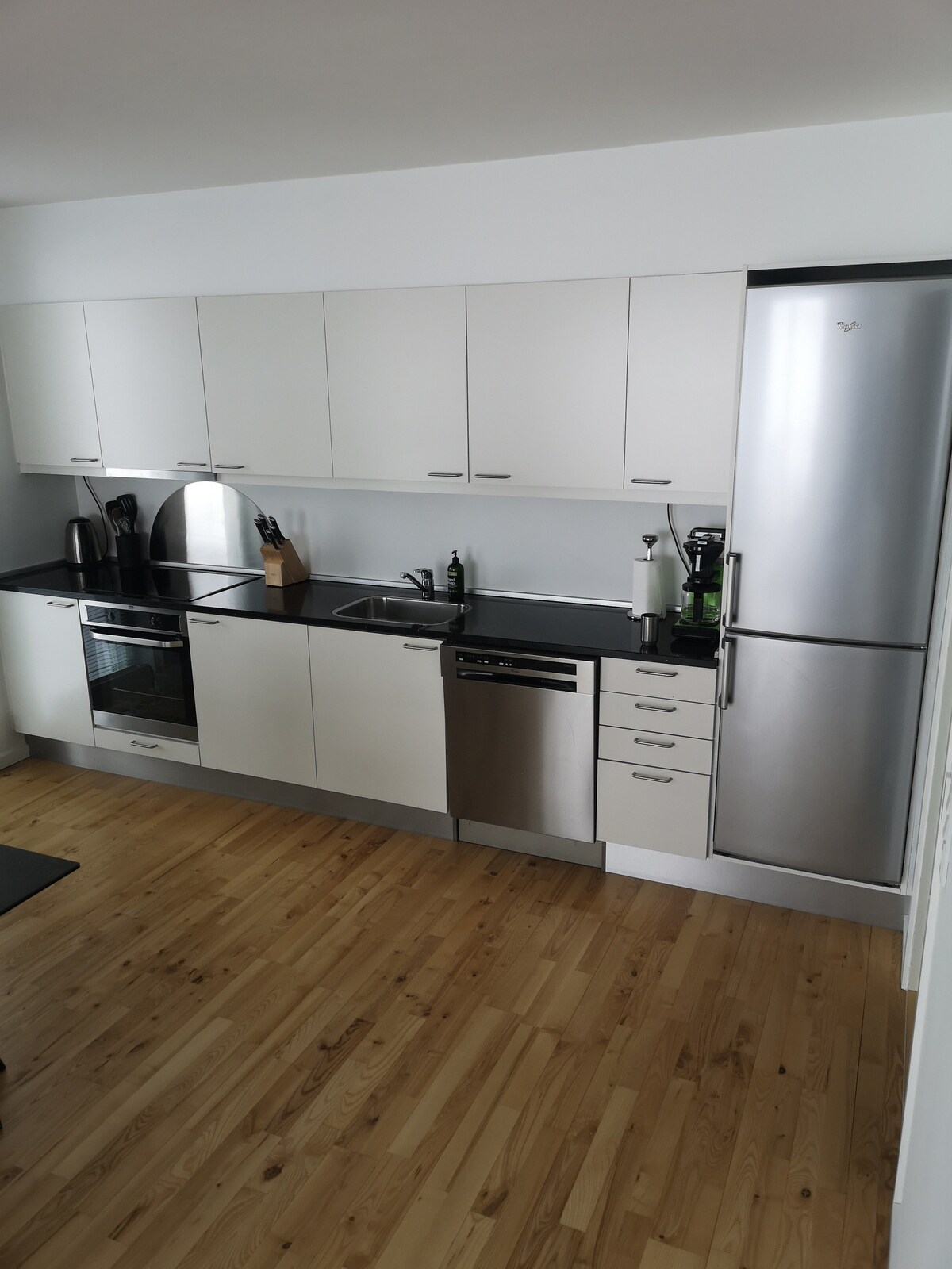 Disfruta de la sensación del centro de la ciudad, en un barrio tranquilo. Acogedor apartamento luminoso con todas las comodidades, en un edificio seguro con acceso remoto a la puerta principal, ascensor y a solo unos pasos de la vibrante vida cotidiana de Nuuk.