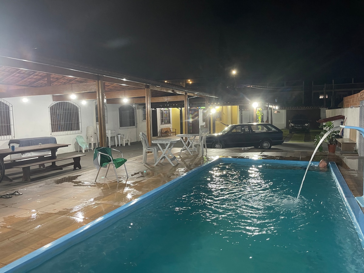 Perfeita para reunir família e amigos com conforto e privacidade. Uma chácara completa com piscina, spa e área gourmet integrada. 📍 Apenas 4 quadras da praia. Acomoda até 12 pessoas para hospedagem. ✨ Durante a semana, permitimos até 22 pessoas no total (12hóspedes + 10 convidados) sem taxa de evento. Para grupos maiores, consulte valores. 3 quartos com ar, TV 75”, Wi-Fi e enxoval completo * Roupa de cama e banho inclusas