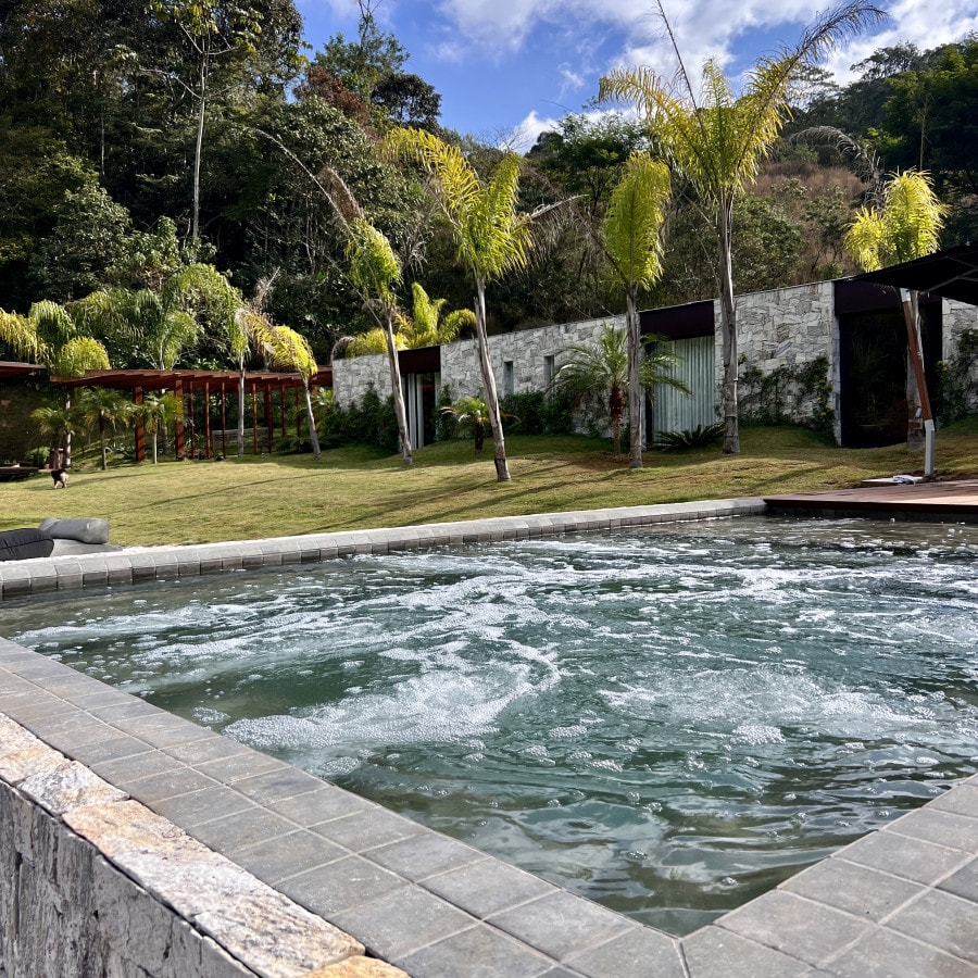 Tenemos 4 cabañas en un hermoso espacio entre vegetación, piedras, agua y un jardín, todo integrado en armonía y delicadeza. Además de toda la estructura privada, también ofrecemos un espacio común para que todos disfruten del sol, la naturaleza, un baño en la piscina rodeado de un cuidado paisajismo y otro refrescante helado, con agua procedente de las montañas en una mini presa preparada con todo el cariño para que tengan otra experiencia con nosotros entre el sonido de los animales que viven allí.