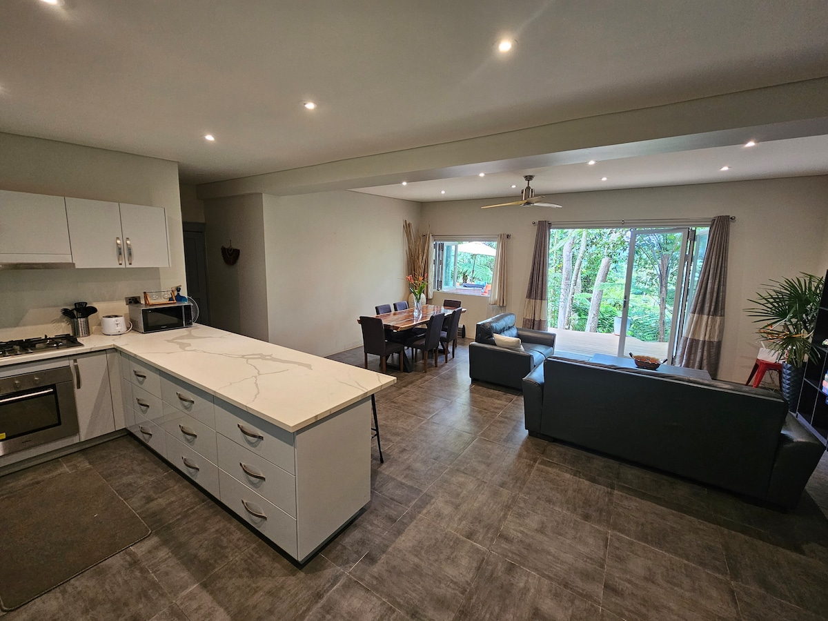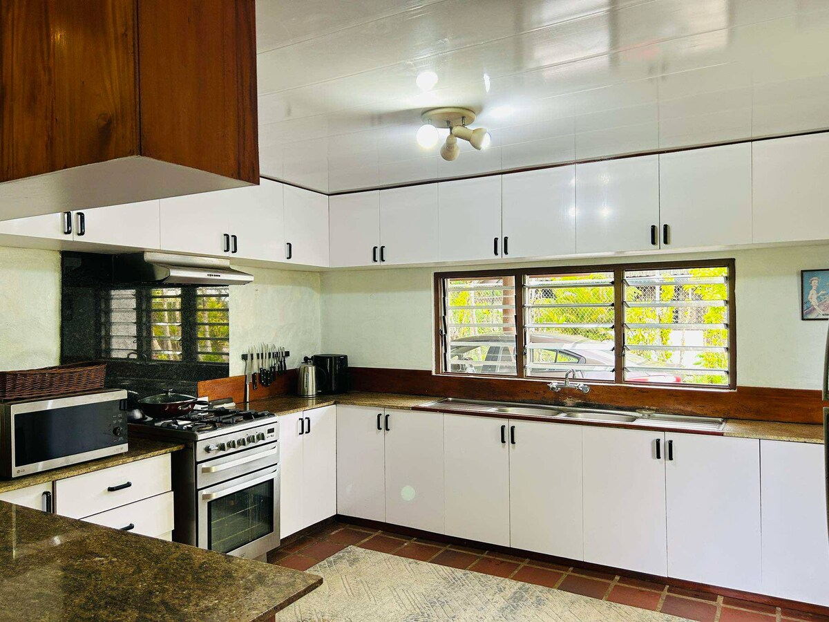 ¡Bula! Esta propiedad da al par 18 del campo de golf Pacific Harbour. A 5 minutos en coche o a 15 minutos a pie llegarás a la playa o a un centro comercial único con auténticas tiendas fiyianas, así como a la base de actividades. Un punto destacado: Naomi, nuestra ejecutiva de la casa, vendrá diariamente para hacer un rápido orden complementario si lo deseas. También, previa solicitud pagada directamente a Naomi, puede cocinar kana (comida) fiyiana, cuidar niños, hacer masajes asegurándose de que tengas unas vacaciones verdaderamente relajantes. 🌴🥥