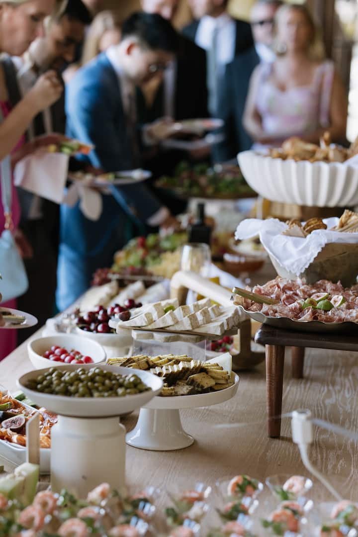 Elige entre tres tablas frías orgánicas hechas a mano o algunos artículos calientes diseñados para una presentación elegante en grupo y reuniones sociales. Los elementos del menú se discutirán al reservar en la lista proporcionada. Cualquier restricción dietética; estaremos encantados de ayudarte y adaptarnos. Las mesas tienen capacidad para aproximadamente 12-15 huéspedes.