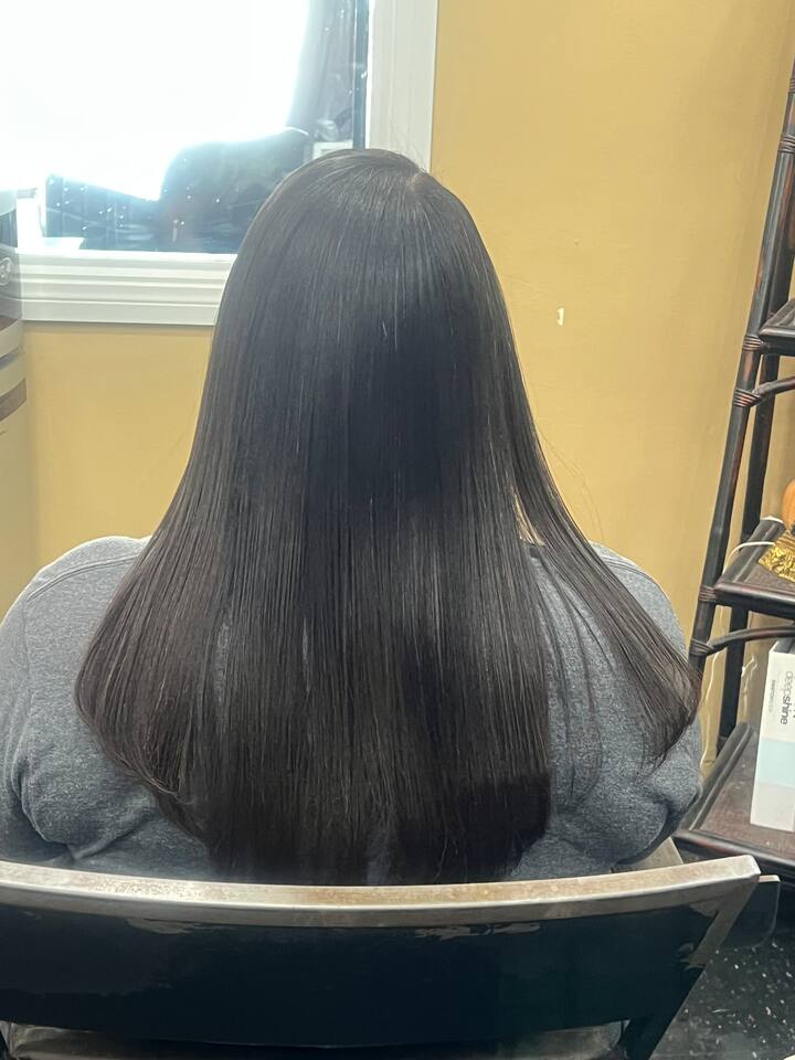Un servicio profesional de alisado del cabello diseñado para suavizar, suavizar y agregar brillo mientras mantiene la salud del cabello. Este tratamiento reduce el encrespamiento, mejora la manejabilidad y deja el cabello liso y sedoso. Ideal para clientes que buscan un estilo liso, pulido y duradero con un cuidado profesional.