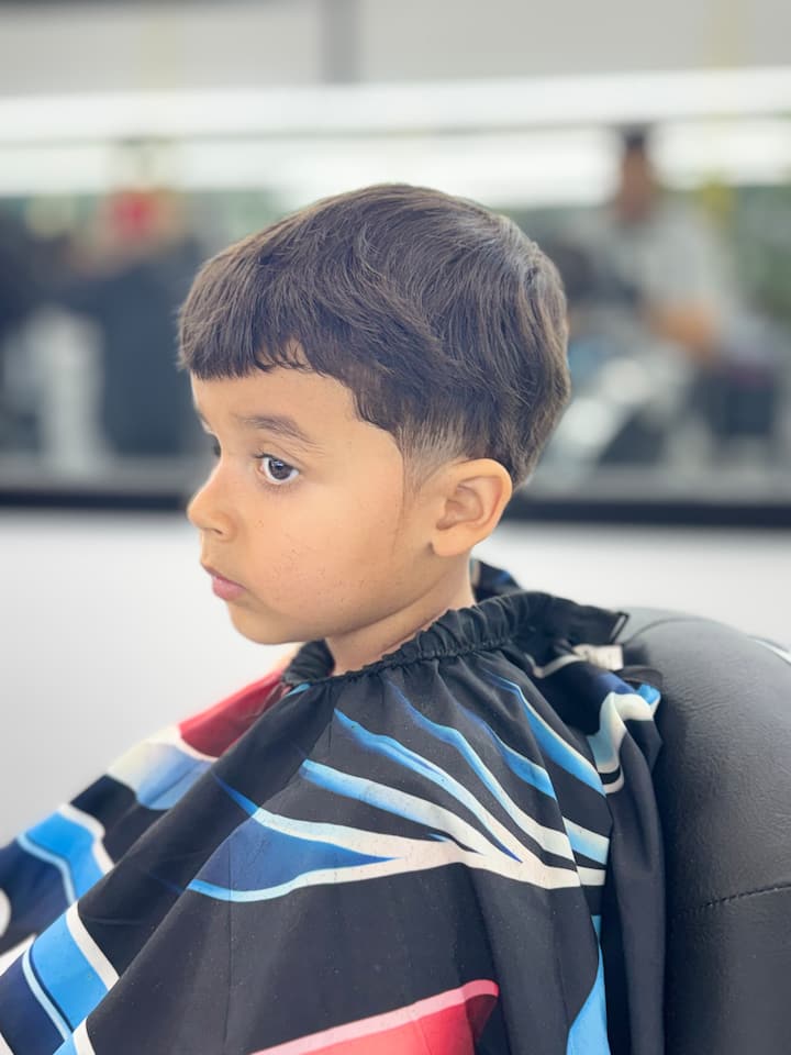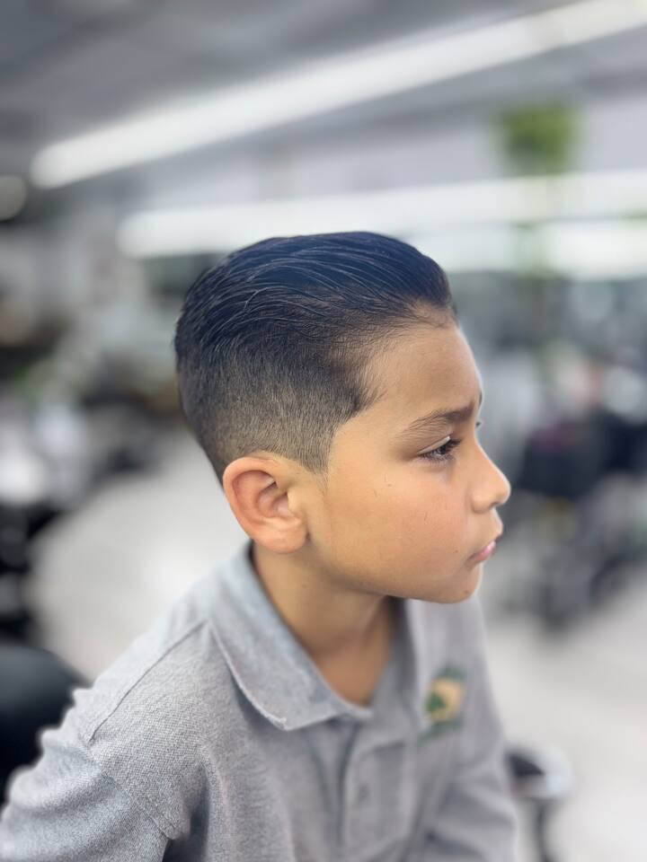 (Corte de pelo – De 5 a 9 años) Cortes infantiles solo con máquina cortapelo (a partir de ½ guarda). No incluye las decoloraciones de la piel. Para los tintes de piel de los niños, reserva Future Gen Style. Esta sesión está especialmente diseñada para niños de 5 a 9 años. Utiliza un enfoque suave y paciente para ofrecer una experiencia sin estrés. Cada joven caballero recibe como recompensa una paleta al final de su servicio.