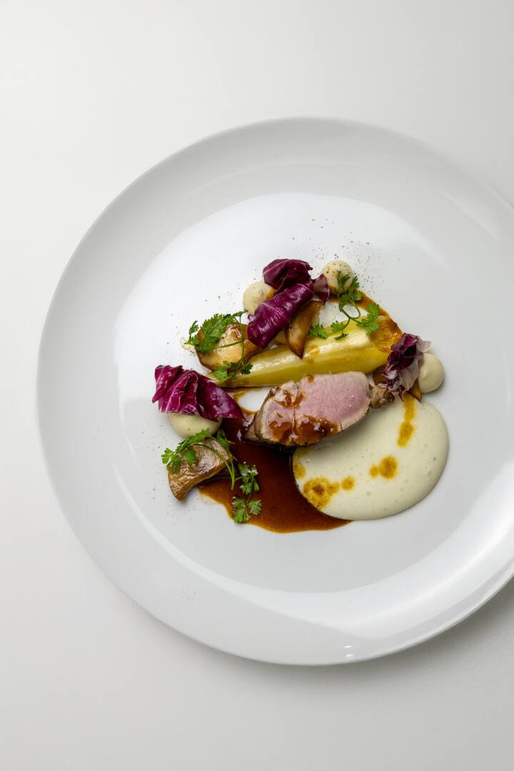 Descubra un viaje gourmet por la Provenza con un menú completo: hummus con zaatar y verduras crujientes como entrante, ravioles de champiñones delicados como primer plato, pato asado acompañado de remolacha y grosella como plato principal y, para terminar, un postre de albaricoque a baja temperatura con crumble de galleta y crema chantillí de mascarpone.