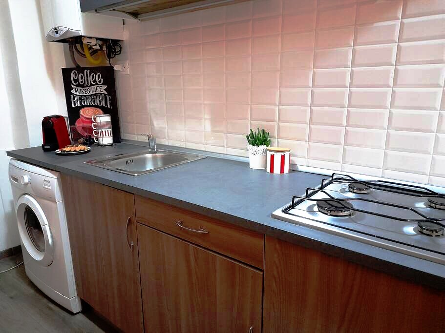 Espacio abierto renovado en el primer piso de un edificio característico en una zona peatonal tranquila en el centro histórico de Sestri Ponente con bares, restaurantes y tiendas típicas italianas de todo tipo. Cocina equipada con estufa y microondas. Baño completo con lavadora. WiFi 4G y TV inteligente Android de 32 pulgadas. Considéralo como tu centro acogedor y asequible para explorar Génova, sus alrededores y la costa de Liguria.