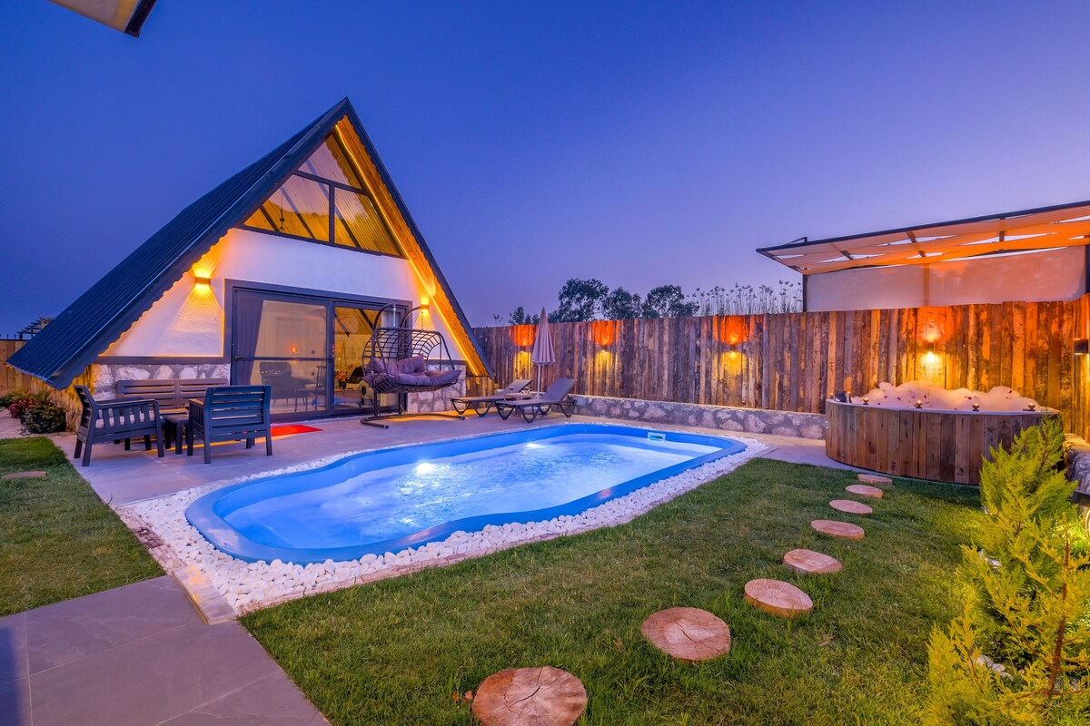 Nuestra villa está ubicada en Antalya Kaş/Kalkan İkizce Neighborhood, a 15 kilómetros del centro de Kalkan y durante el día el minibús de transporte público pasa frente a nuestra casa, una casa adecuada para nuestros huéspedes que no tienen coche, nuestra casa está completamente decorada con madera y está especialmente diseñada para solo dos personas, 1+0 luna de miel y piscina privada para parejas románticas. Casa de amor amor.
