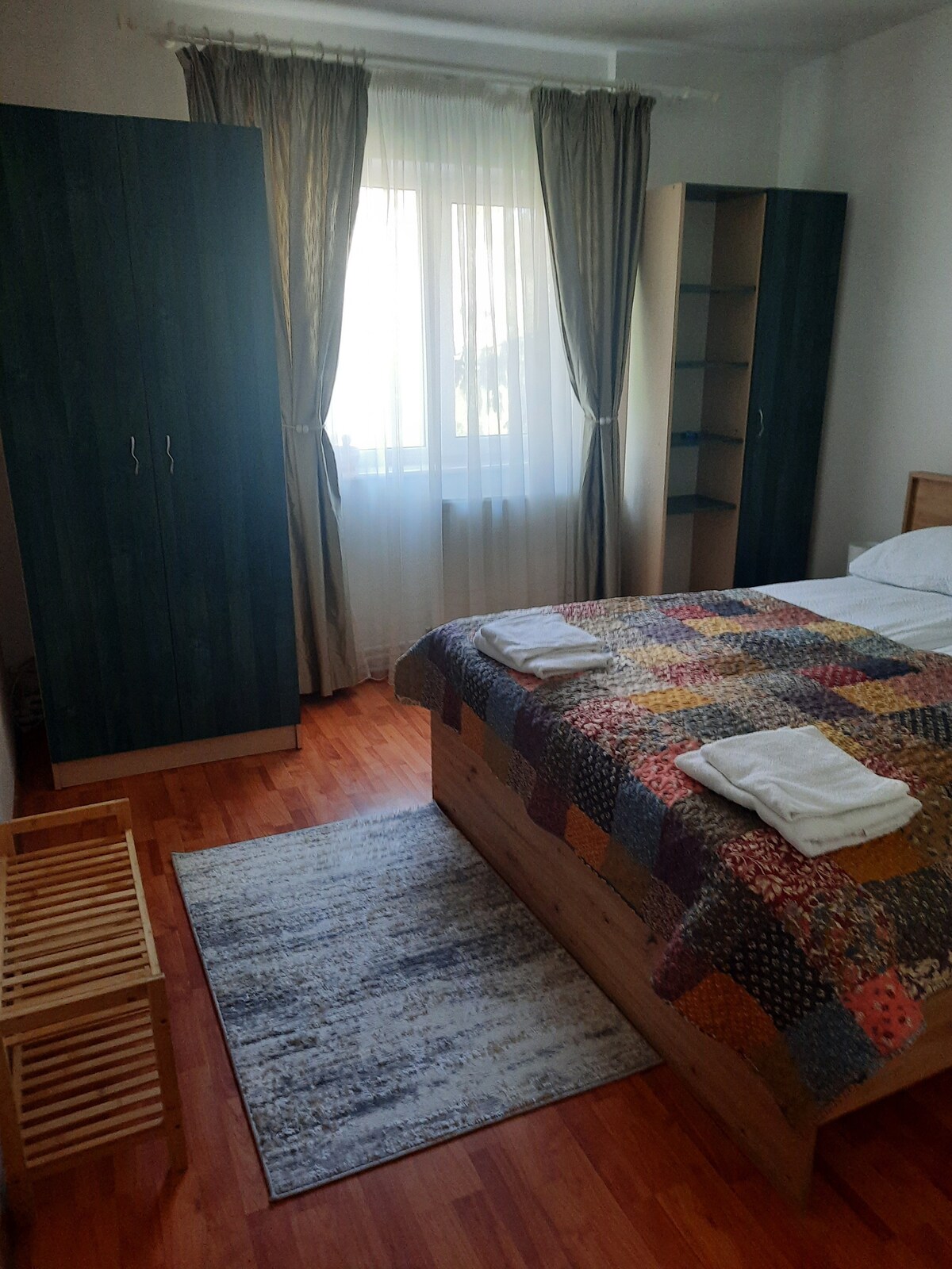 Departamento ideal para 4 personas en la tranquila zona verde a pocos minutos a pie del centro. Tiene 2 dormitorios amueblados con buen gusto, 1 cocina totalmente amueblada y equipada, 1 baño. Si es necesario, hay una cama supletoria disponible para niños de 0 a 3 años. Cerca hay un centro comercial, tiendas de comestibles, cajeros automáticos, farmacia. Se afla la 29 km distanta de orasul istoric Brasov si la 30 km de Tusnad Bai. Después de las 22:00 hay un horario tranquilo.