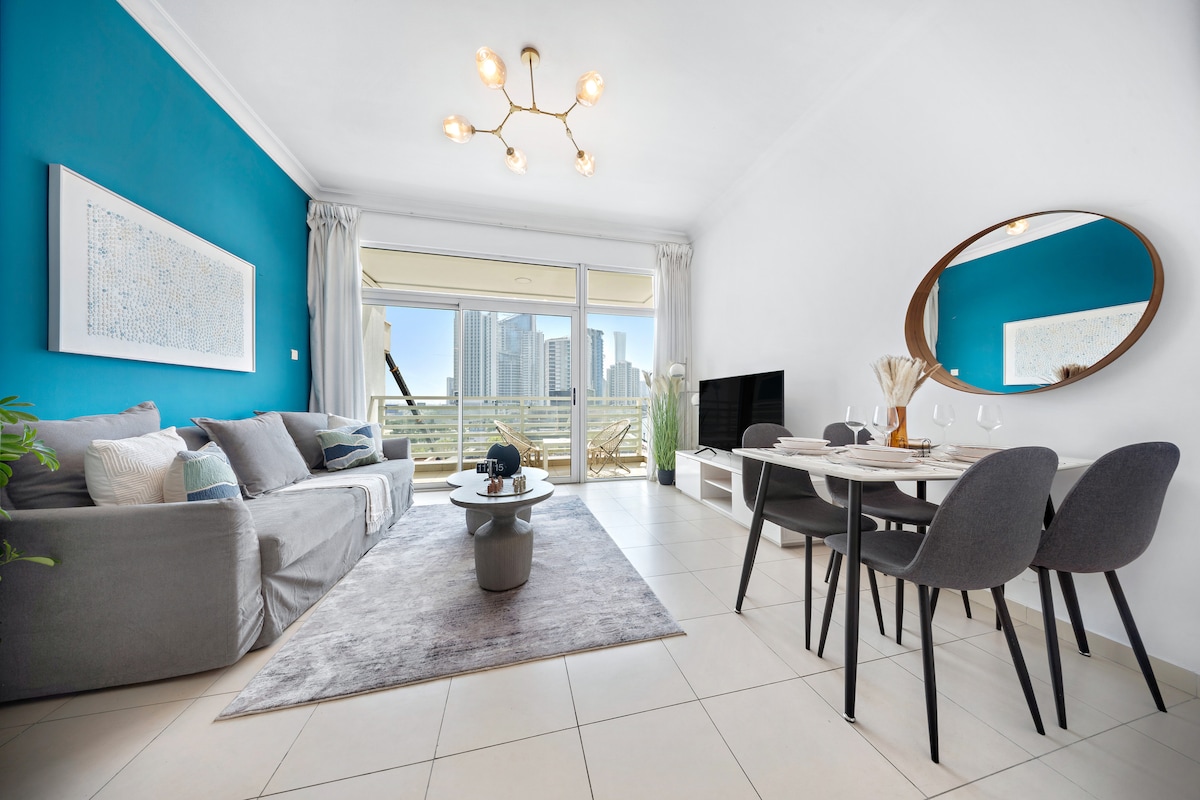 Bienvenido al apartamento recientemente renovado en Ocean Heights - 1 apartamento Br para 4 personas. - Planta 73 - Acceso gratuito a la piscina y al gimnasio, vapor y sauna. - A 5 minutos a pie de la playa. - Supermercado en el edificio. - Aparcamiento gratuito. Wifi GRATUITO - Cocina totalmente equipada con lavavajillas - Balcón grande. - Smart TV con canales y YouTube - El apartamento tiene una impresionante vista de Dubái. El dormitorio tiene 1 cama grande, y en el salón hay un sofá-cama Recibido por el conserje las 24 horas del día, los 7 días de la semana Relájate en este elegante espacio