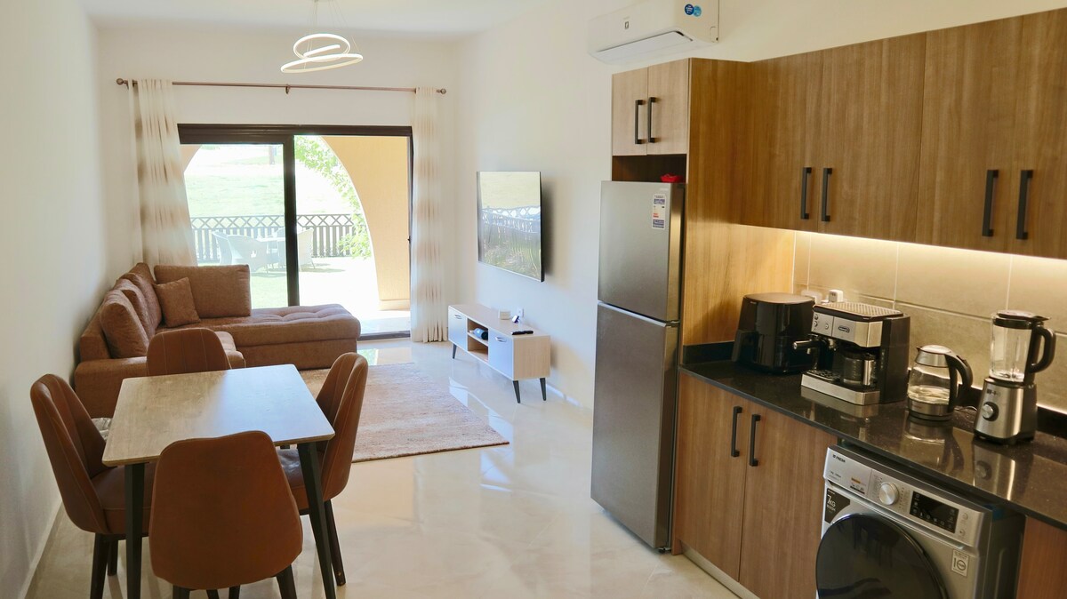 Ofrecemos un nuevo apartamento de lujo de tres habitaciones en Riviera Sharm, ubicado en un edificio moderno con piscina y vista al mar. El departamento está totalmente equipado con: • muebles, electrodomésticos y ropa de cama nuevos (2025); • Colchones cómodos de espuma viscoelástica, ropa de cama nueva y toallas. • Aires acondicionados Sharp independientes en cada habitación con un sistema avanzado de filtración de aire. • Wi-Fi de alta velocidad; • servicio de entrega de comida a domicilio disponible; • Una tienda de conveniencia justo al otro lado de la calle.