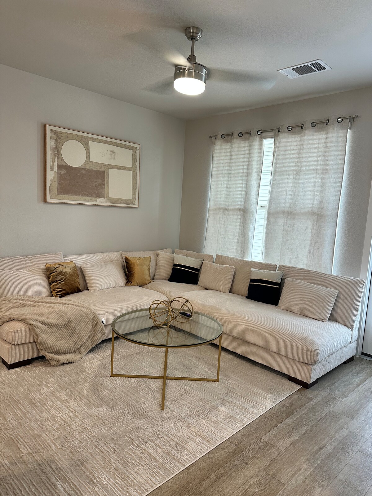 sumérgete en esta moderna y encantadora casa de nueva construcción. (A 23 minutos del centro de Houston)(a 25 minutos del aeropuerto intercontinental de arbustos)(¡a 7 minutos de Extreme Offroad Park & Beach! ¡Hermoso suelo de vinilo blanco con muebles modernos y elegantes siempre decorados con las estaciones para hacerte sentir como en casa! TV Samsung de 65 pulgadas en la sala de estar con sonido envolvente de Samsung. Electrodomésticos inteligentes nuevos. Televisores inteligentes con camas cómodas. Un patio privado con una parrilla de 5 quemadores. Parque del barrio ENORME área de patio de tuberías industriales