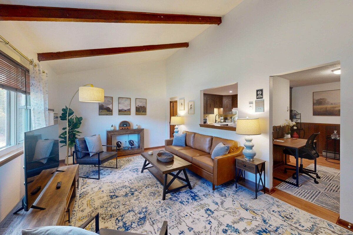 ¡Relájate en este elegante estudio! Nuestra casa está en un barrio tranquilo de casas antiguas rodeadas de bosques, pero convenientemente ubicada en el centro de la ciudad, a media milla del verde de nuestro pueblo (Milford Oval). Un corto paseo por el río te llevará a cafeterías, restaurantes, pubs con música en vivo, oficina de correos, biblioteca, tiendas y establecimientos útiles como CVS. Sea lo que sea lo que te traiga... negocios, esquí, senderismo, antigüedades, una celebración familiar o un fin de semana romántico... ¡estamos deseando hospedarte!