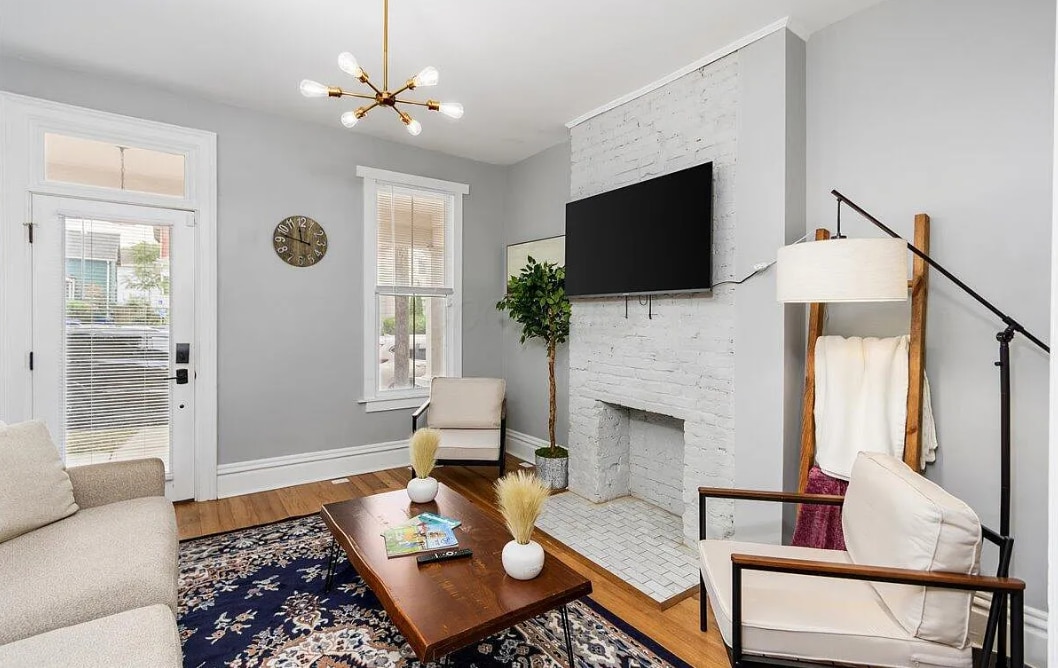 Nuestro Boutique Luxury Brownstown ofrece a los huéspedes comodidades y estilo de primera clase, a una manzana de High Street y del corazón del Short North con restaurantes, tiendas y bares. Renovado en 2022, el espacio cuenta con suelos de madera originales y restaurados con una hermosa escalera, acabados de cocina de alta gama con encimeras de cuarzo y dos baños privados con azulejos modernos y duchas de gran tamaño con asientos tipo banco. Si buscas una experiencia boutique, no hay nada mejor en Columbus.