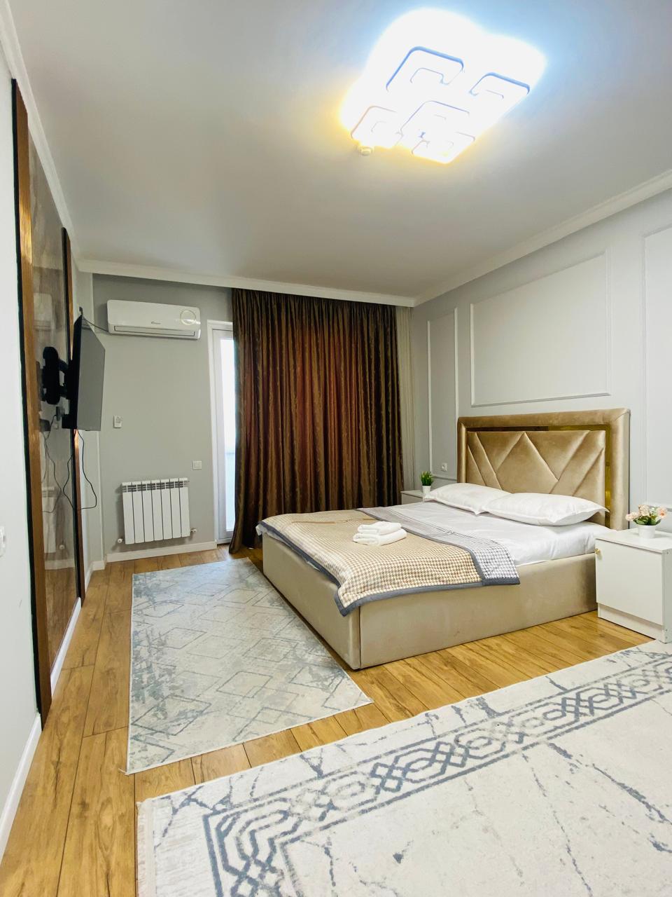 Bienvenido al apartamento de élite ubicado en el complejo residencial Al-Farabi cerca de la plaza. El apartamento está recién reformado con todos los elementos básicos necesarios para una estancia larga y cómoda para una estancia larga y cómoda: todos los electrodomésticos, internet wifi de alta velocidad, TV por cable, plazas para dormir 2, también hay un sofá plegable de 2 camas para los huéspedes, todos los muebles necesarios, platos para cocinar y comer.
