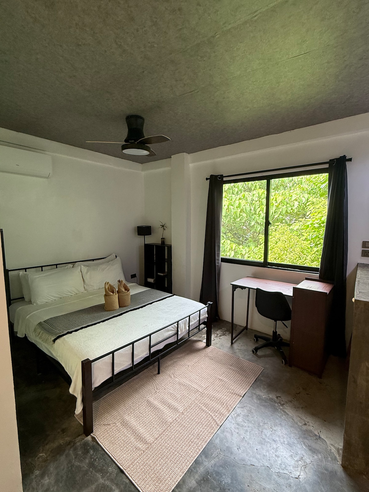 Una habitación de ambiente tropical que ofrece comodidad y conveniencia modernas. Amplia cama tamaño queen, aire acondicionado y ducha caliente. A poca distancia a pie de la mayoría de restaurantes y bares. Estamos ubicados en un barrio tranquilo y silencioso a solo 5 minutos en coche de Cloud 9, a 5 minutos a pie del popular restaurante Kermit y a 10 minutos a pie de la carretera principal, donde se encuentran muchos restaurantes y bares. NOTA: ESTA ES UNA ISLA EN DESARROLLO, HAY CONSTRUCCIÓN DETRÁS DE NUESTRO ALOJAMIENTO. ES RUIDOSO DURANTE EL DÍA.