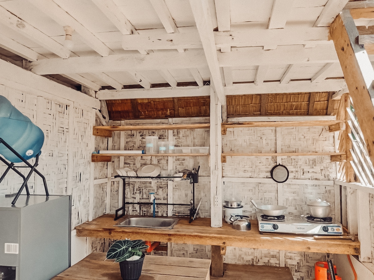¡Nuestras sencillas villas de dos pisos son el valor de tu dinero! COMODIDADES: 1 cama tamaño queen con sábanas y toallas Estante de ropa de aire acondicionado Cocina privada con nevera pequeña, utensilios de cocina y estufa CR privado con ducha caliente y fría ARTÍCULOS de wifi del PUEBLO: cocina común Common Workspace Common CR Zona de descanso en el comedor con juegos de mesa A 5 minutos a pie de la playa de Malinao. A 10 minutos en auto de Secret Beach. A 5 minutos en auto del General Luna Center