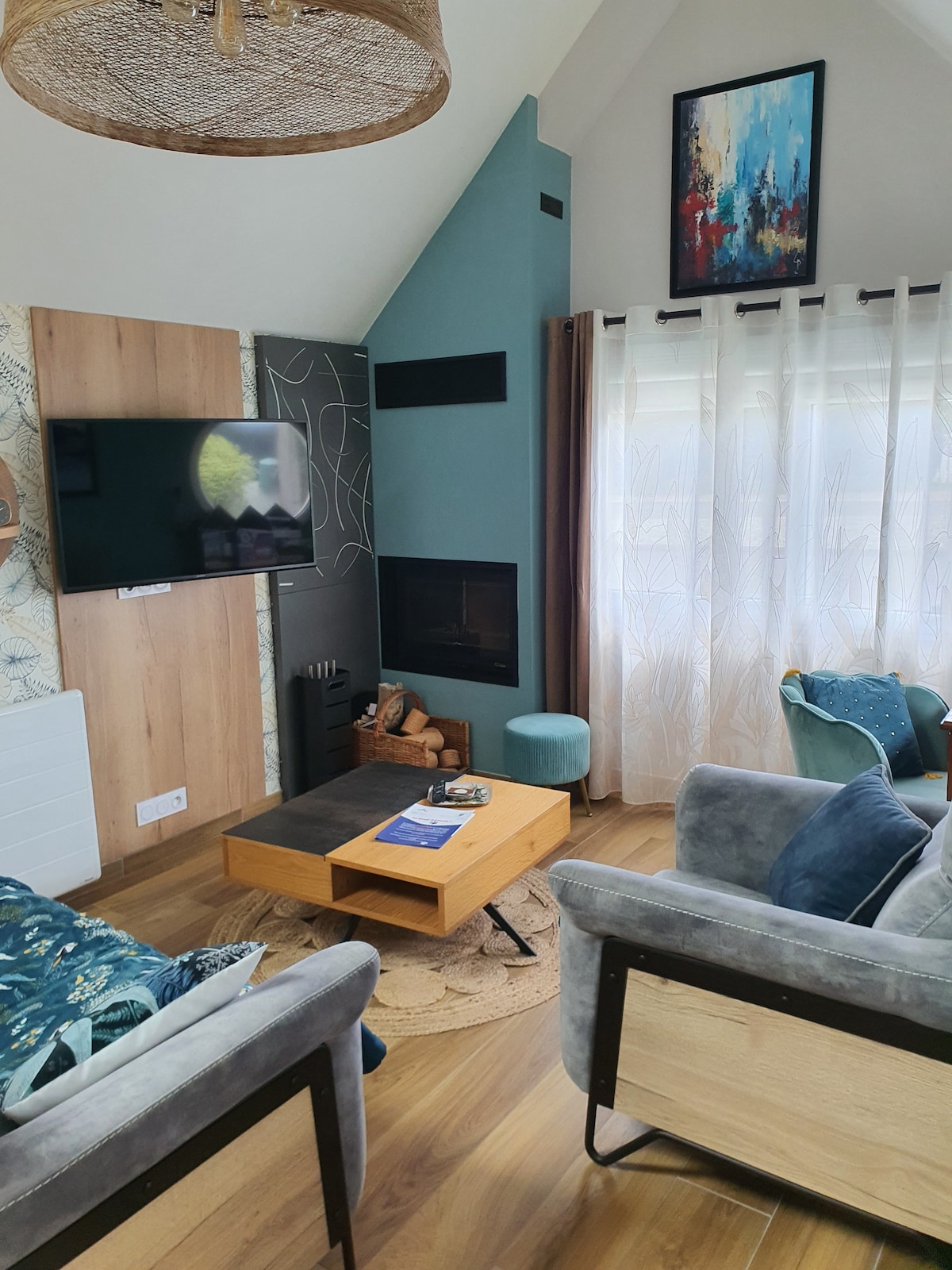 maison totalement rénovée en 2024 RDC, cuisine équipée,salon avec canapé, TV( wifi, fibre), enceinte poêle à bois, 1 WC 1er: chambre avec un lit king size( 180x200), 1 WC séparé, sdb avec une baignoire, douche, double vasque, machine à laver 2ème: chambre avec 2 lits( 90x200) coin jeux enfants le jardin donnant sur la vallée du guillec est équipé d une térrasse avec jacuzzi sous pergola, douche extérieure, barbecue, salon de jardin, terrain de pétanque. idéal pour couple ou famille