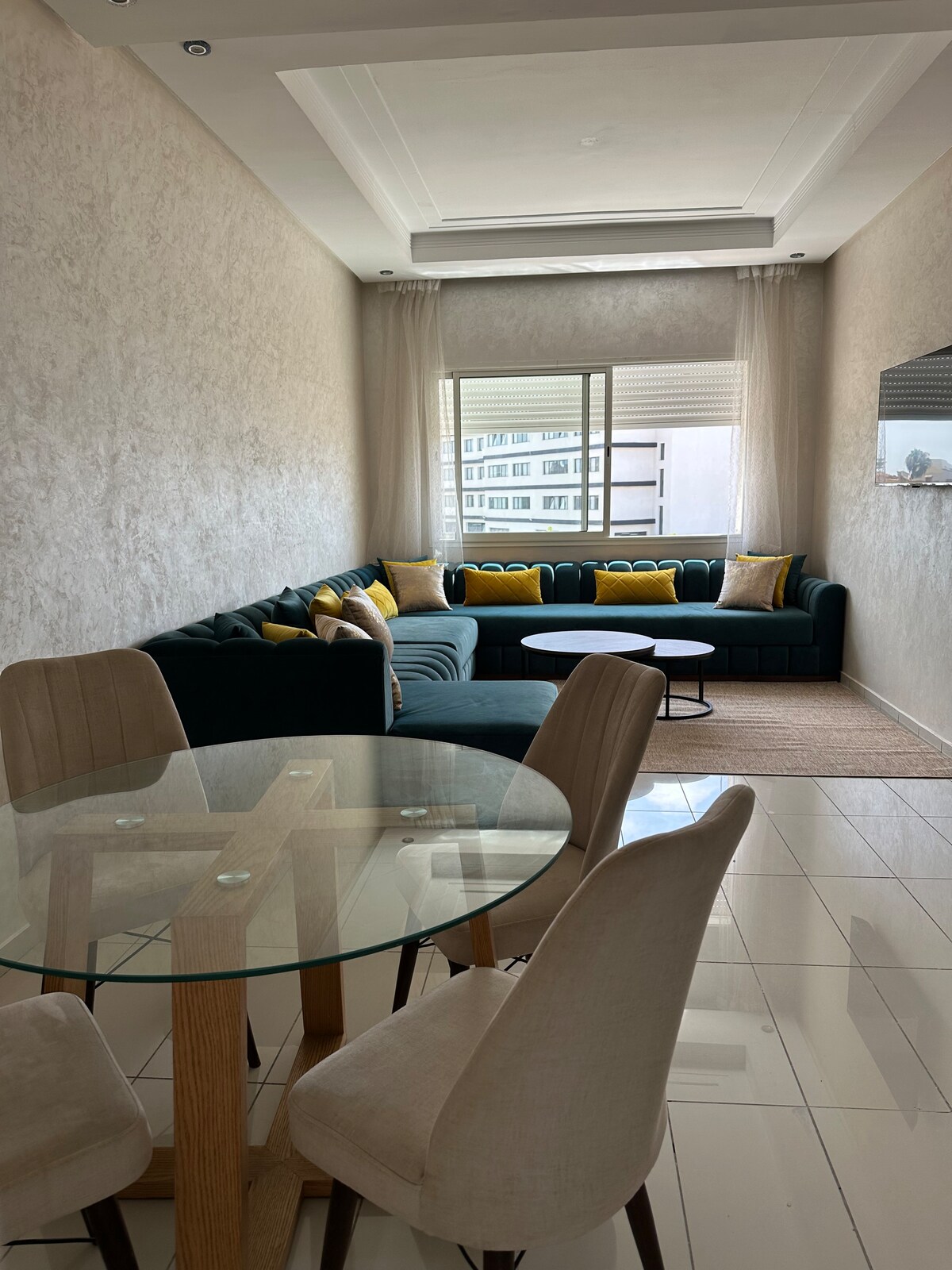 ✨ Your cozy retreat in El Jadida! ✨ This bright and welcoming apartment is located on the 4th floor of a secure and quiet residence. It offers a warm atmosphere with tasteful décor, modern comfort, and plenty of natural light, making it the ideal place to relax and enjoy your stay. The location is perfect, just a short walk from the train station, shops, and everything you might need during your visit.