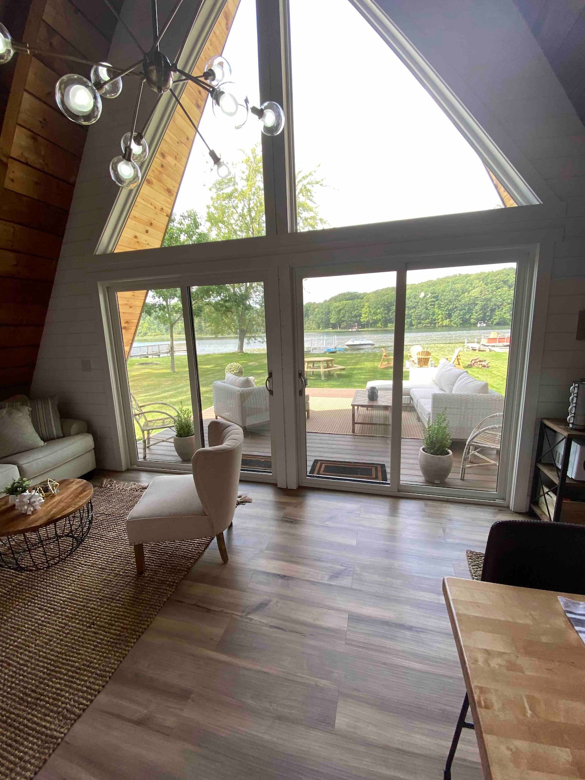 Nestled in a small cove on a large lake, this waterfront cottage has been completely renovated. It has 66' of private shoreline; an elevated front deck plus side patio; and stone bonfire pit & gas BBQ grill. Guests also get FREE & exclusive use of pontoon boat, 2 kayaks and paddle boat, plus private dock (early May through late October, weather permitting). Swan Cottage is very dog-welcoming. The yard is not fenced, however we provide ground stakes & cable ties.