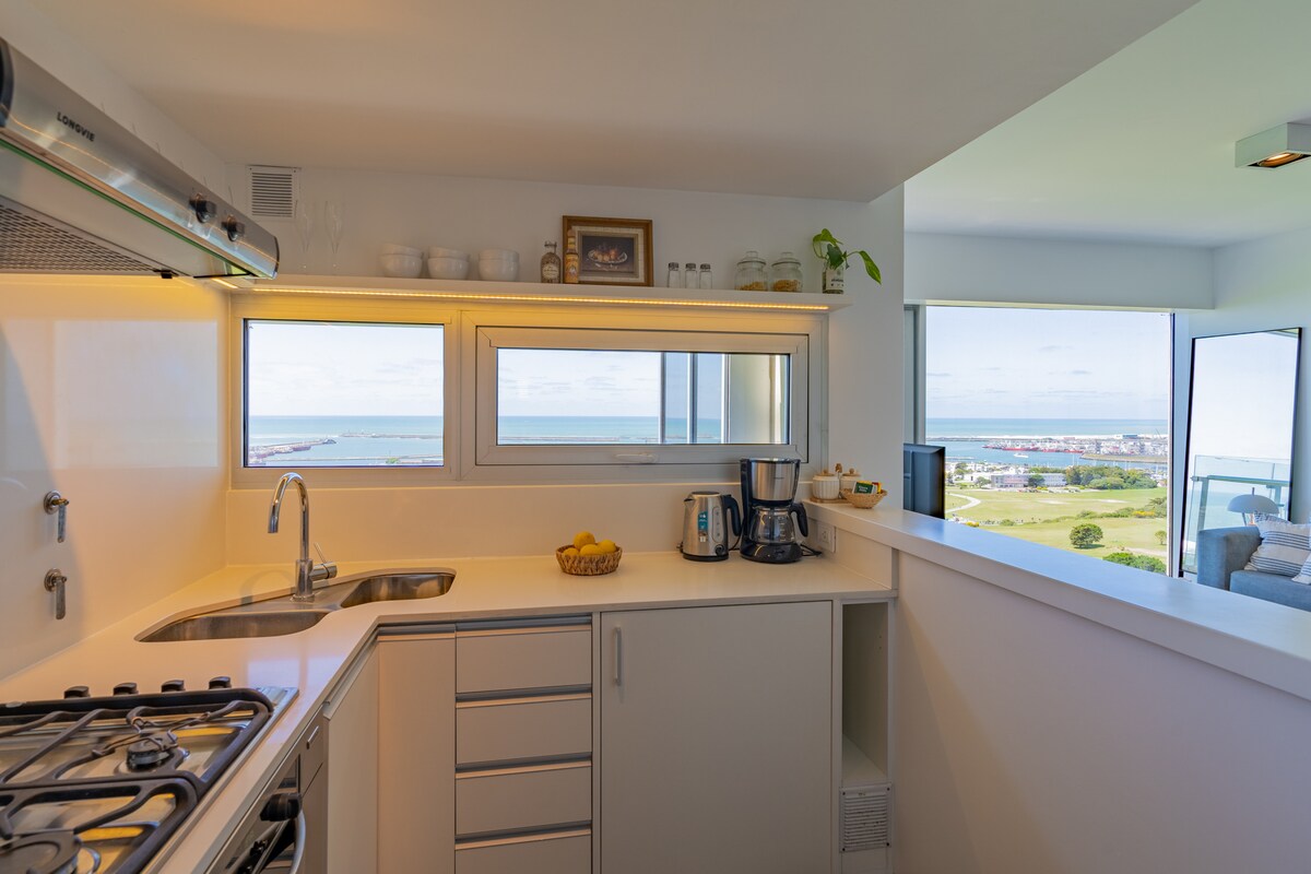 Moderno Semipiso de 3 ambientes con las mejores vistas al Mar y al Golf de Playa Grande. Cuenta con palier privado, amplio y luminoso estar-comedor, moderna cocina con sector de lavadero y excelente amoblamiento (puede variar). Baño completo y dos cómodos y cálidos dormitorios, uno de ellos en suite con vestidor e hidromasaje. Posee además balcón terraza al frente y contrafrente y cochera cubierta. Amenities exclusivos, spa, gimnasio, pileta, quincho y seguridad 24 hs. Ubicación privilegiada.