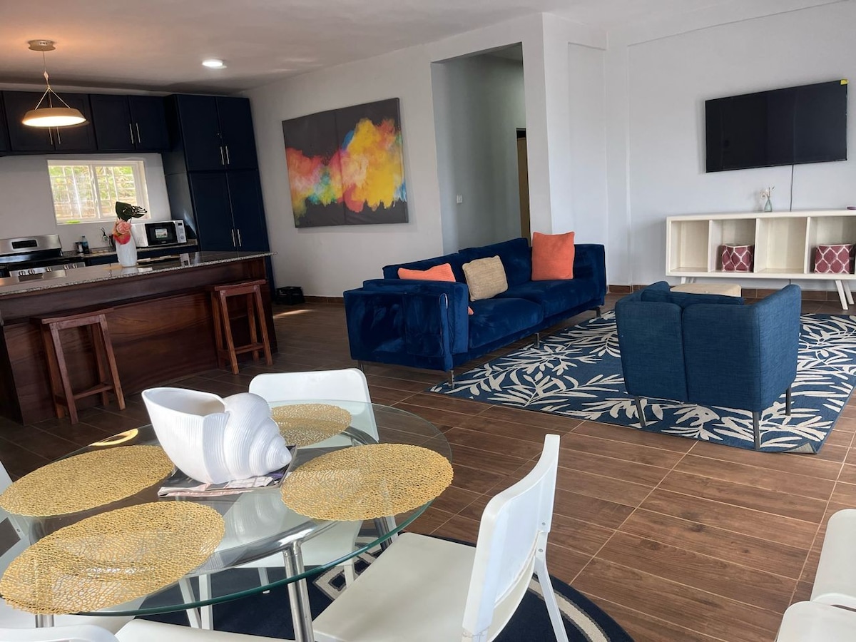 Myneya Views es un apartamento con servicios incluidos de 3 dormitorios y 2 baños ubicado en las colinas de Sussex, en Bell Drive, junto a Peninsula Road Freetown Rural. Ven a maravillarte con las vistas panorámicas del Océano Atlántico desde nuestra terraza en la azotea. A 3 minutos de la playa del río n.º 2 y del restaurante Franco.
