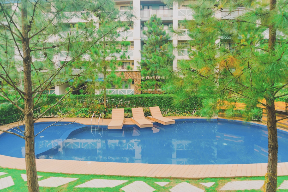 Relájate en una unidad dúplex inspirada en una cabaña de madera con 2 dormitorios reales y un ático espacioso convertido en un tercer dormitorio. Es una casa familiar con internet rápido, TV por cable, teléfono fijo, dormitorios con aire acondicionado, duchas con calefacción, cocina completa, Netflix y aparcamiento abierto para 2 personas. Es perfecto para familias que quieren un lugar seguro y tranquilo para relacionarse. No hay vistas a Taal desde aquí, pero el barrio es precioso, está lleno de pinos.