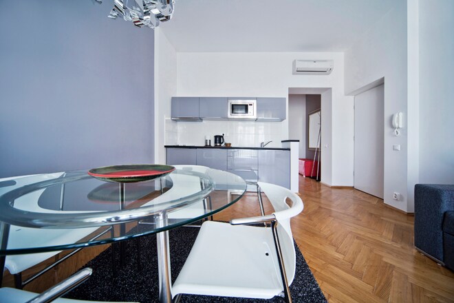 Apartamento moderno en el centro de Cracovia - Aleja 69. Interior elegante, cama cómoda, cocina totalmente equipada y un lugar para relajarse en un balcón privado. Wifi rápido, aire acondicionado, TV, lavadora, aspiradora, lavavajillas y un juego de cosméticos para los huéspedes. Excelente ubicación: a 5 minutos a pie de la plaza del mercado, cerca de Wawel y Kazimierz. Restaurantes, tiendas y transporte público cercanos. Posibilidad de registro automático. ¡El alojamiento perfecto para alojarte en Cracovia!
