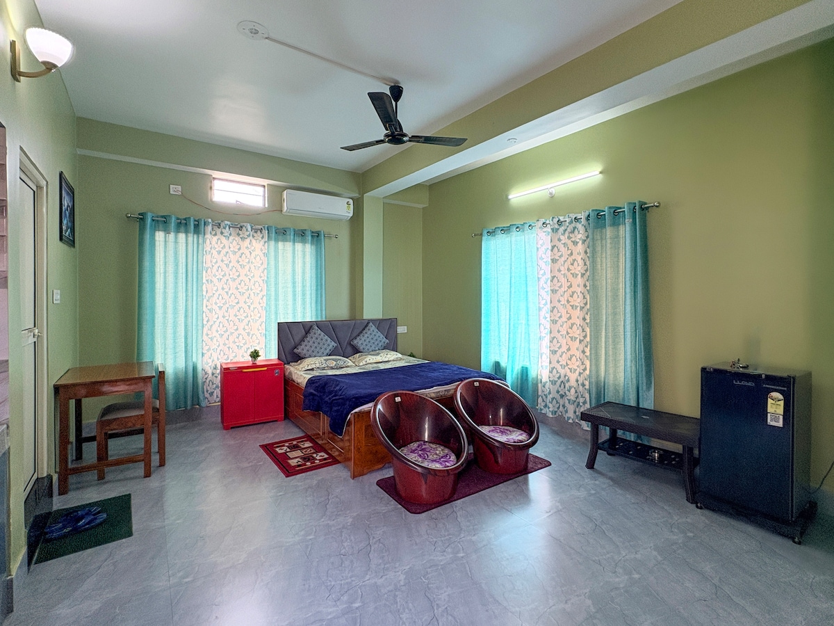 Experience comfort at Salbari Queen Residency, your peaceful stay in Siliguri. Enjoy airy rooms with hot water, kitchen access, and scenic views of Salbari and the hills. Located on Salbari Main Road near groceries, cafés, and transport. Airport, NJP Railway, and cabs to Sikkim or Darjeeling are easily accessible. Watch the toy train pass by . Ideal for work trips, traveler's, family visits, and quiet stays .