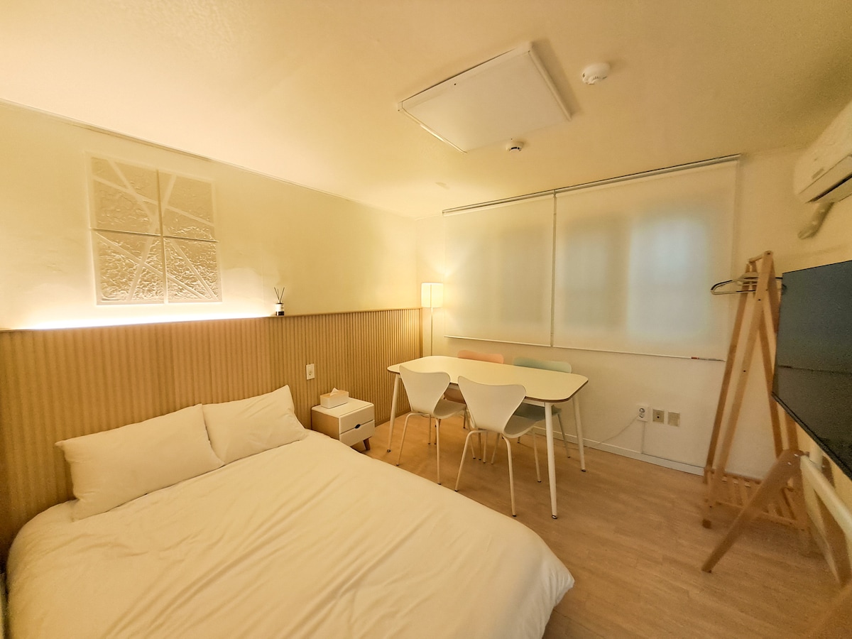 ¡Bienvenido a la casa del sonido! SOUND STAY es el único alojamiento en Corea que cuenta con los altavoces A9 de Bang & Olufsen, la mejor marca de audio del mundo, y ofrece la mejor experiencia de sonido. La habitación se encuentra en excelentes condiciones gracias a la última remodelación realizada en 2025. * Este alojamiento está registrado y operado como una empresa legal de alojamiento compartido para ciudadanos nacionales bajo la exención de la Ley de Misterio.