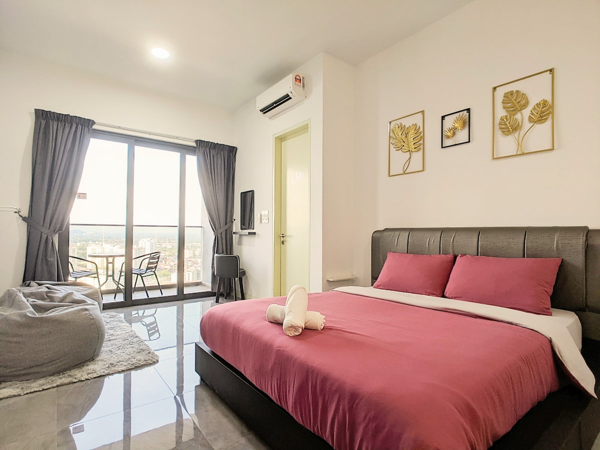 Vista/tipo :estudio, vista a la ciudad (balcón) Disfruta de unas vacaciones en nuestro estudio con aire acondicionado con VISTAS a la CIUDAD en el corazón de Melaka. Perfecto para parejas o amigos que buscan explorar los alrededores de la ciudad. Estamos a poca distancia en auto de todos los lugares famosos de Melaka. Tiene capacidad para 2 personas con una sala de estar y un comedor y una cocina totalmente equipada. SE PROPORCIONA WIFI Y CAJA DE TV ESTACIONAMIENTO GRATUITO PARA UN VEHÍCULO Solo proporcionaremos un juego de tarjeta de acceso y llave, solicita otro juego con antelación si es necesario.