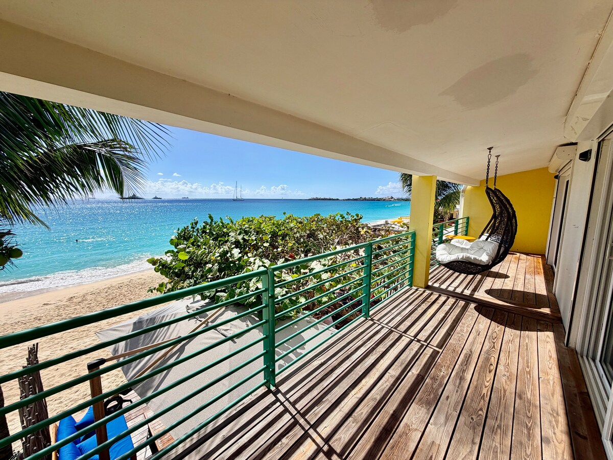 ¡El lujo de un hotel de 5 estrellas es tuyo en esta moderna casa de playa! 2 habitaciones con baño privado y acceso a la terraza. Disfruta cocinando tus propias comidas y cena dentro o en la terraza (¡o en la playa!). La terraza más grande de la playa de Simpson Bay lo tiene todo: un enorme sofá cama, tumbonas, sala de estar y comedor para tu comodidad y placer. Relájate en el estudio y disfruta de la pantalla grande allí o en cualquiera de los dormitorios. ¡Tu vecino es un hotel boutique y con mucho gusto te servirá comidas y bebidas directamente en tu terraza! Hay mucha más información disponible.
