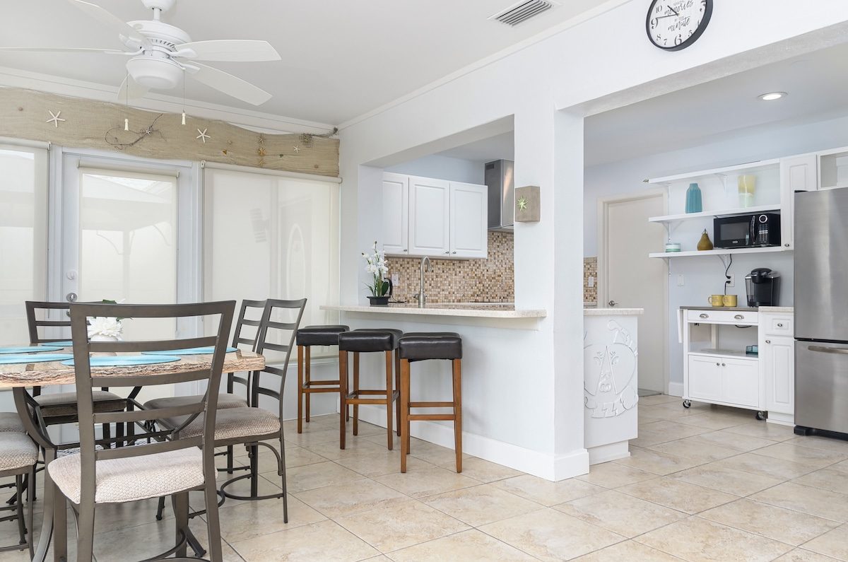✨ Relax in your outdoor lounge, enjoy a game night under the lights, and walk to downtown for drinks and dining — all just minutes from the beach. This fully remodeled 1-bedroom with king bed is designed for a simple, comfortable stay with everything you need to unwind. Enjoy access to a spacious shared outdoor lounge area — perfect for relaxing or a casual game night. Highly rated by guests for location, cleanliness, and comfort.