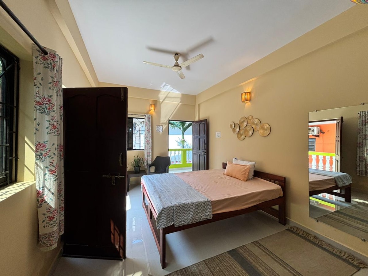 Buscando espacio, comodidad y una sensación de paz y tranquilidad, ¡para trabajar desde casa! Esta puede ser la casa perfecta para ti. Estamos ubicados, en una calle tranquila y alejada de la carretera principal. Sin embargo, a pocos pasos de la principal atracción de la playa de Ashvem, North-Goa. Todas las cabañas de playa, supermercado y restaurantes están a 3 a 5 minutos de nuestro departamento. Nuestro apartamento está equipado con: Wi-Fi, respaldo de energía, lavadora, 2 dormitorios (uno con aire acondicionado y otro sin aire acondicionado), 1 cocina, pasillo y balcón.