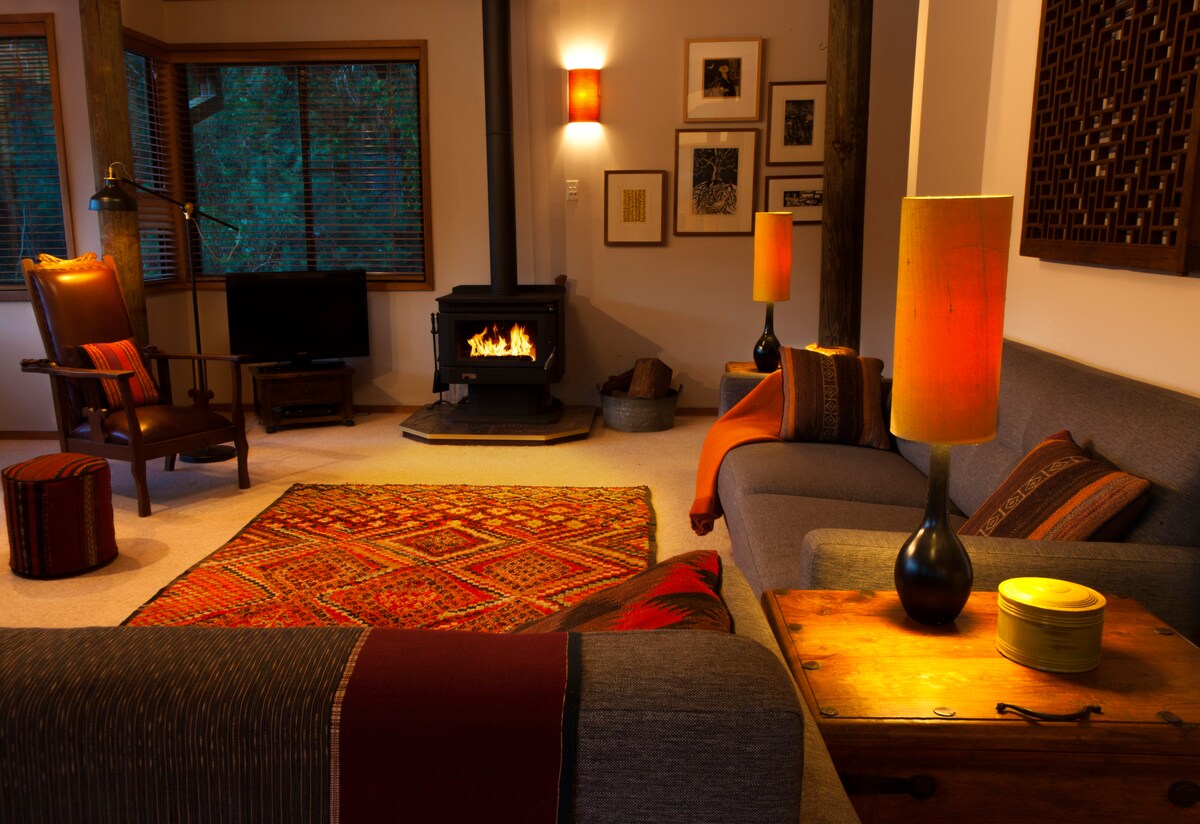 Rodeada de parques nacionales en el río Hawkesbury, la casa del árbol es una casa de campo de cedro rojo diseñada arquitectónicamente situada en lo alto de la orilla del río con un muelle privado y espectaculares vistas al agua. Las dos camas tamaño queen están equipadas con lujoso algodón y lino belga. El dormitorio principal está en un nivel de entrepiso y tiene vistas a la sala de estar que tiene una chimenea de combustión lenta. Perfecta en verano o invierno. (La salida del domingo es a las 17:00 horas).