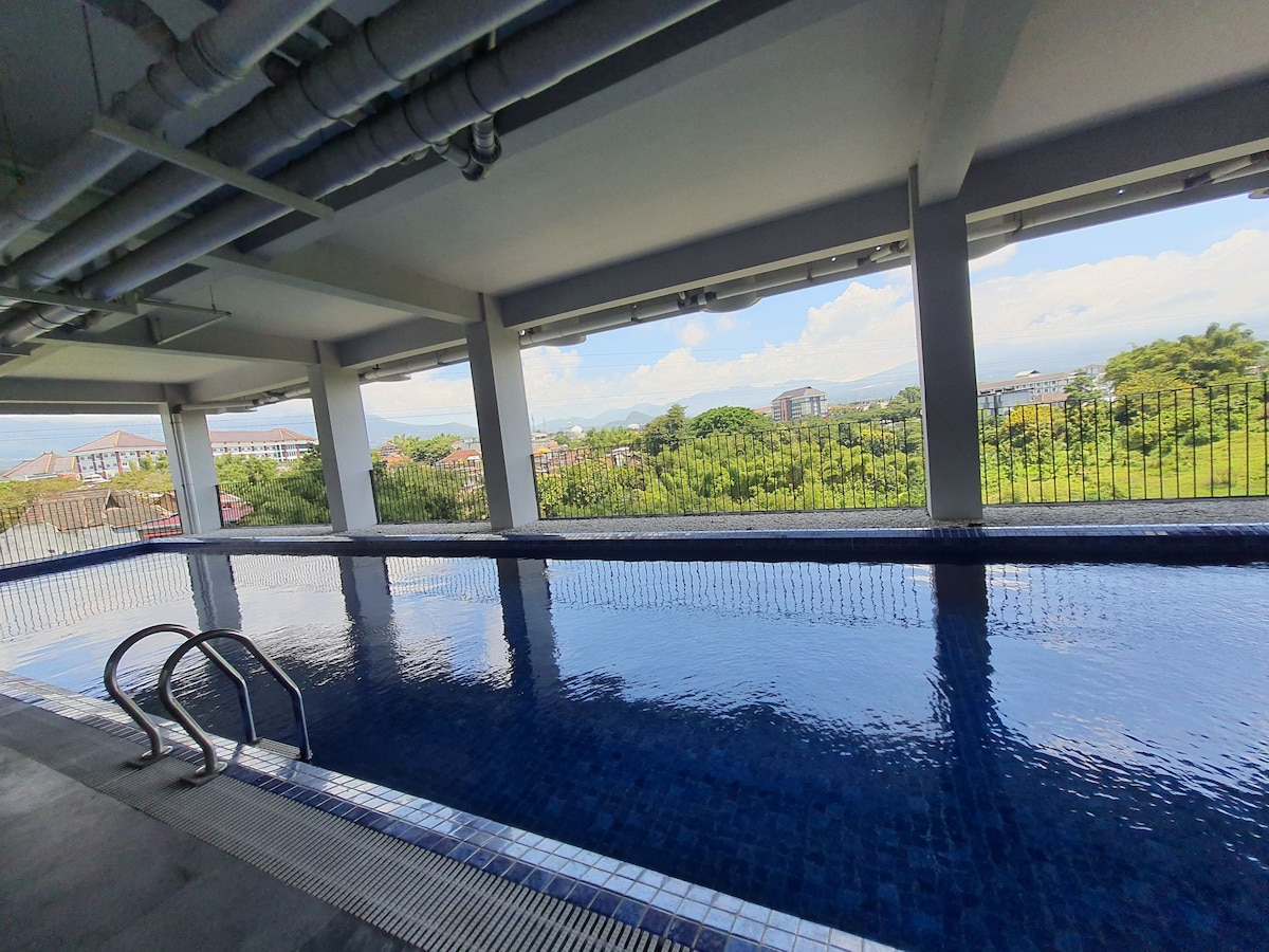 Bienvenido a @Mojo, estamos ubicados en el último bloque de apartamentos en la zona de Malang / Batu, apartamento Begawan. ¡Lugar perfecto para aventurarse tanto en Malang como en la zona de Batu! En la 3ª planta del apartamento, el edificio cuenta con 2 piscinas (1 piscina unisex y 1 piscina solo para mujeres), una zona de fútbol cubierta y un pequeño gimnasio equipado con una cinta de correr y un equipo de fitness, y un ciclo estacionario. El apartamento tiene varias terrazas en la azotea del piso 9 y 15, donde se puede disfrutar de las vistas de las montañas.
